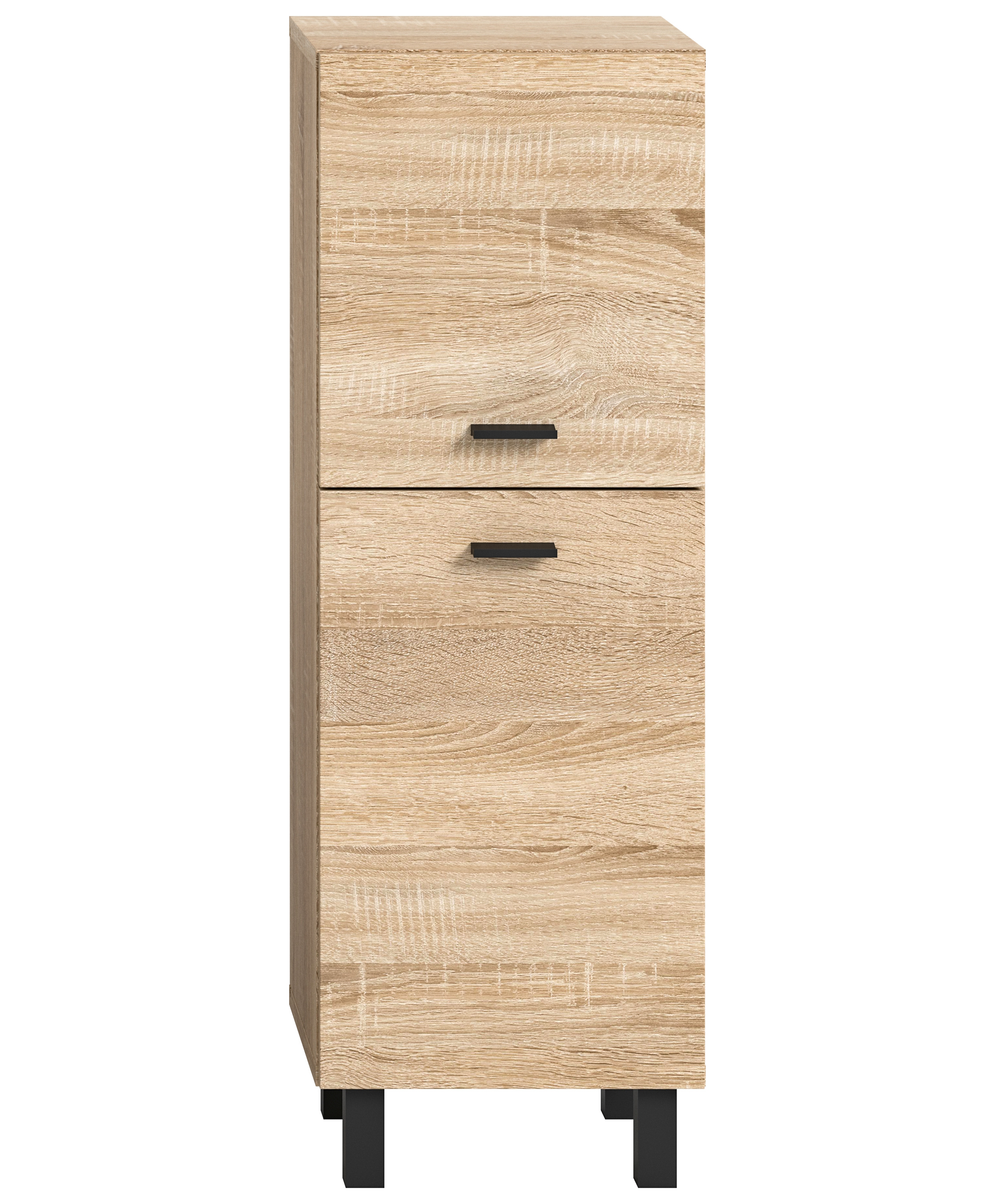 - Design/Stil: Schlanker Badschrank in Eiche Sonoma Holznachbildung für ein minimalistisches und modernes Erscheinungsbild im Badezimmer.
