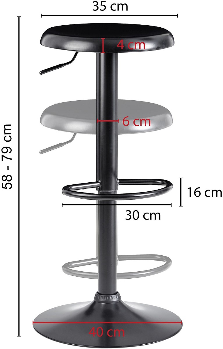 ABMESSUNGEN ✔ Breite: 40 cm // Höhe: 58 - 79 cm // Tiefe: 40 cm // Sitzhöhe: 58 - 79 cm // Durchmesser Sitzfläche: 35 cm.