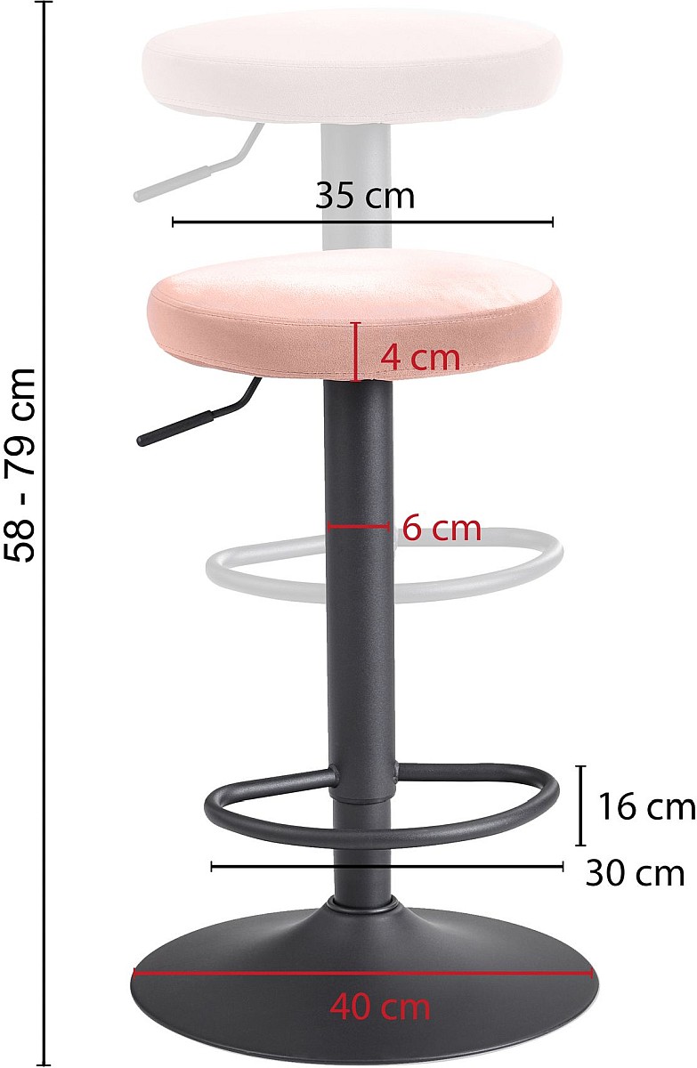 ABMESSUNGEN ✔ Breite: 40 cm // Höhe: 58 - 79 cm // Tiefe: 40 cm // Sitzhöhe: 58 - 79 cm // Durchmesser Sitzfläche: 35 cm // Maximalbelastbarkeit: 100 kg.