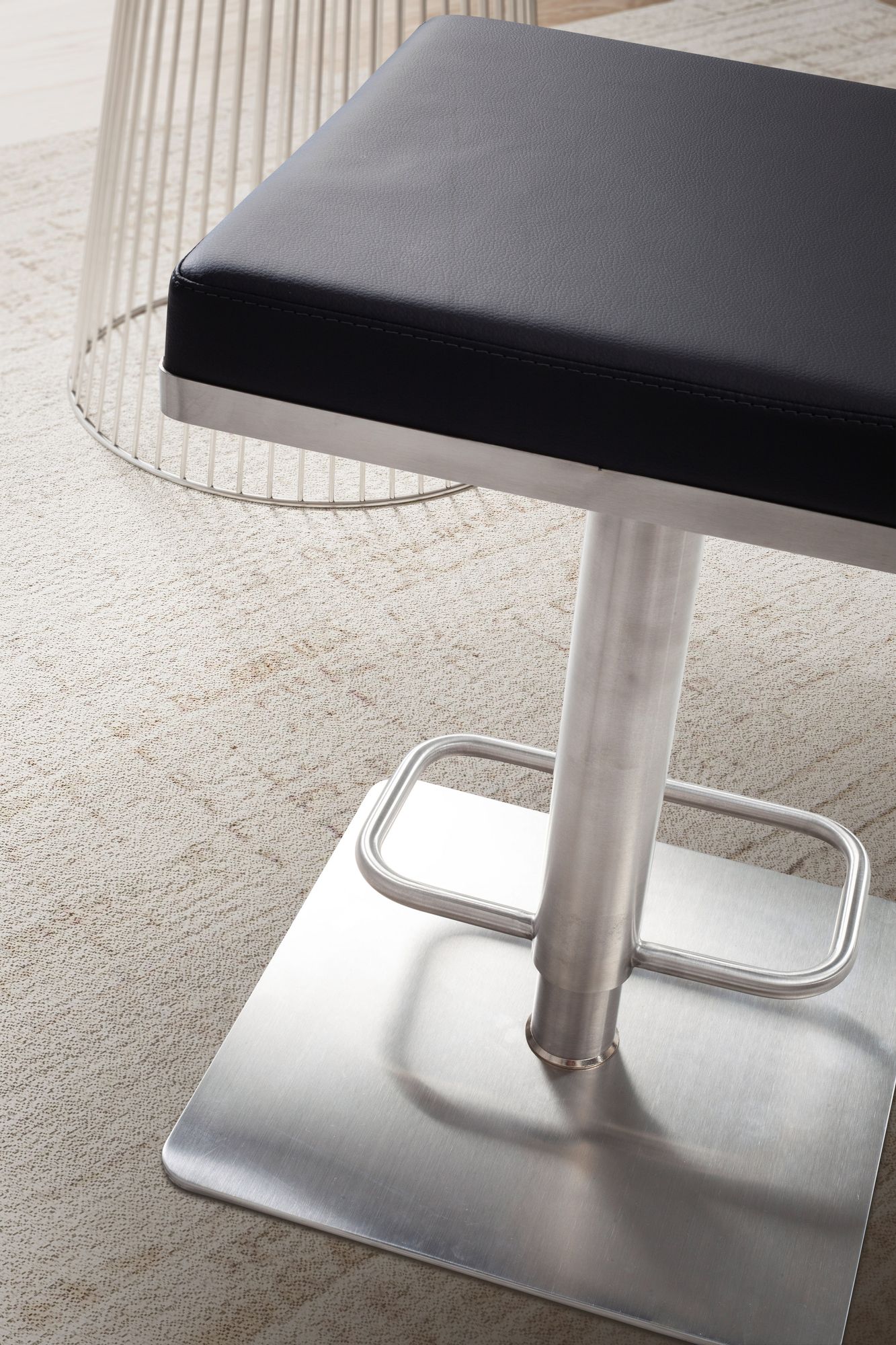 MATERIAL - Die Sitzfläche des Barhockers besteht aus Kunstleder. Der Standfuß, die Fußablage und Bodenplatte sind aus gebürstetem Edelstahl.