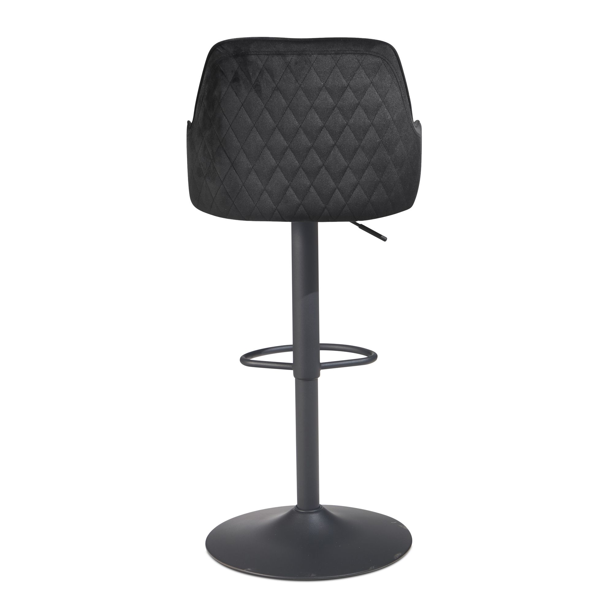MATERIAL - Sitzfläche und Rückenlehne: weicher Samt // Trompetenfuß und Fußablage: lackiertes Eisen.