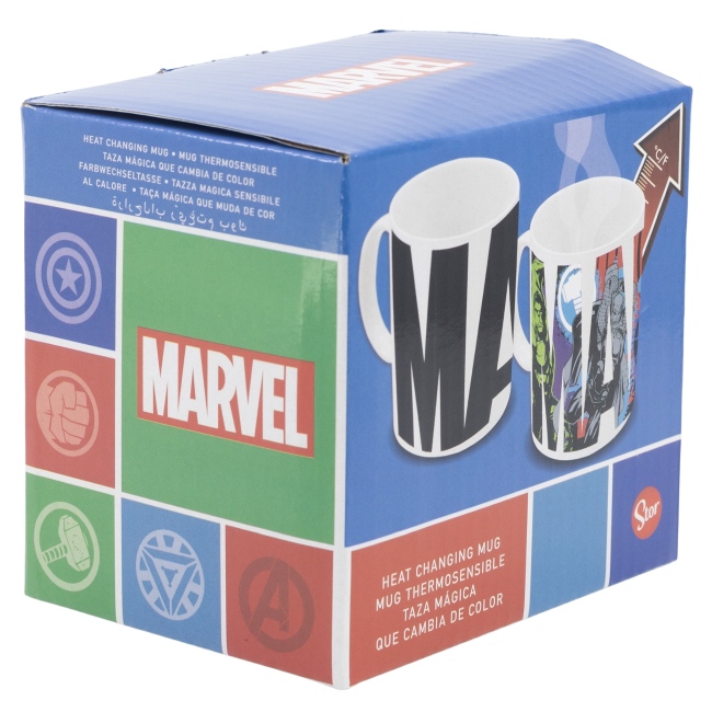 Besonderheit: Marvellogo wechselt die Farbe bei einem Heißgetränk
