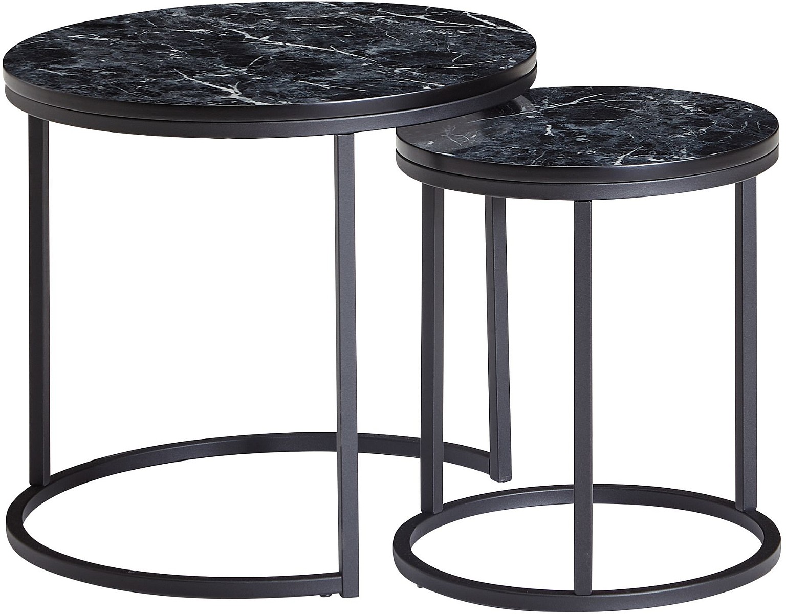 MATERIAL ✔ Tischplatten: Foliertes MDF in schwarzer Marmor Optik mit schützender PVC-Beschichtung // Gestelle: sandgestrahlter Stahl.
