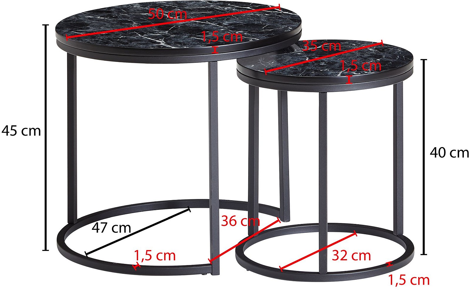 ABMESSUNGEN ✔ Großer Tisch: Breite: 50 cm, Höhe: 45 cm, Tiefe: 50 cm, Maximale Belastbarkeit: 5 kg // Kleiner Tisch: Breite: 35 cm, Höhe: 40 cm, Tiefe: 35 cm, Maximale Belastbarkeit: 3 kg.