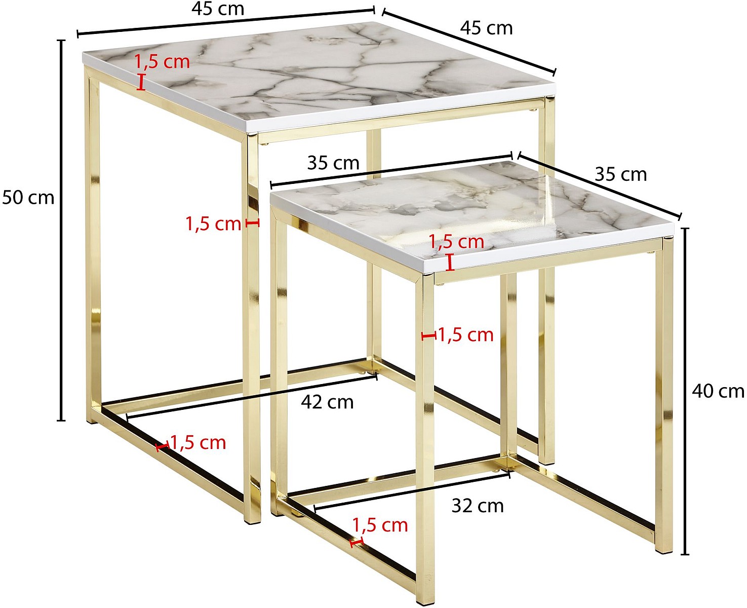 ABMESSUNGEN ✔ Großer Tisch: Breite: 45 cm, Höhe: 50 cm, Tiefe: 45 cm, Maximale Belastbarkeit: 5 kg // Kleiner Tisch: Breite: 35 cm, Höhe: 40 cm, Tiefe: 35 cm, Maximale Belastbarkeit: 3 kg.