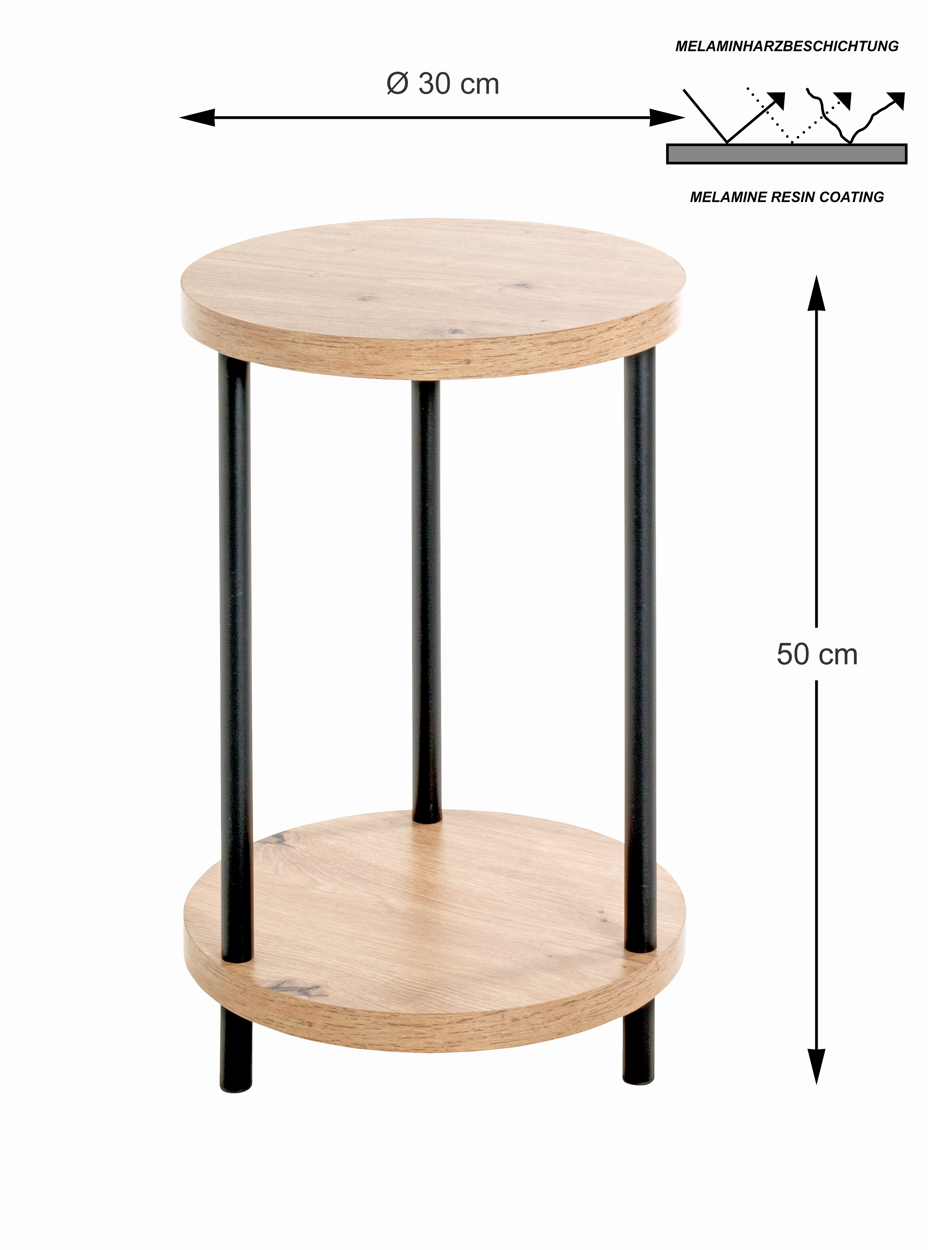 Tisch- und Ablageplatte: MDF (Mitteldichte Holzfaserplatte) in Eiche hell Holznachbildung mit Farbakzenten