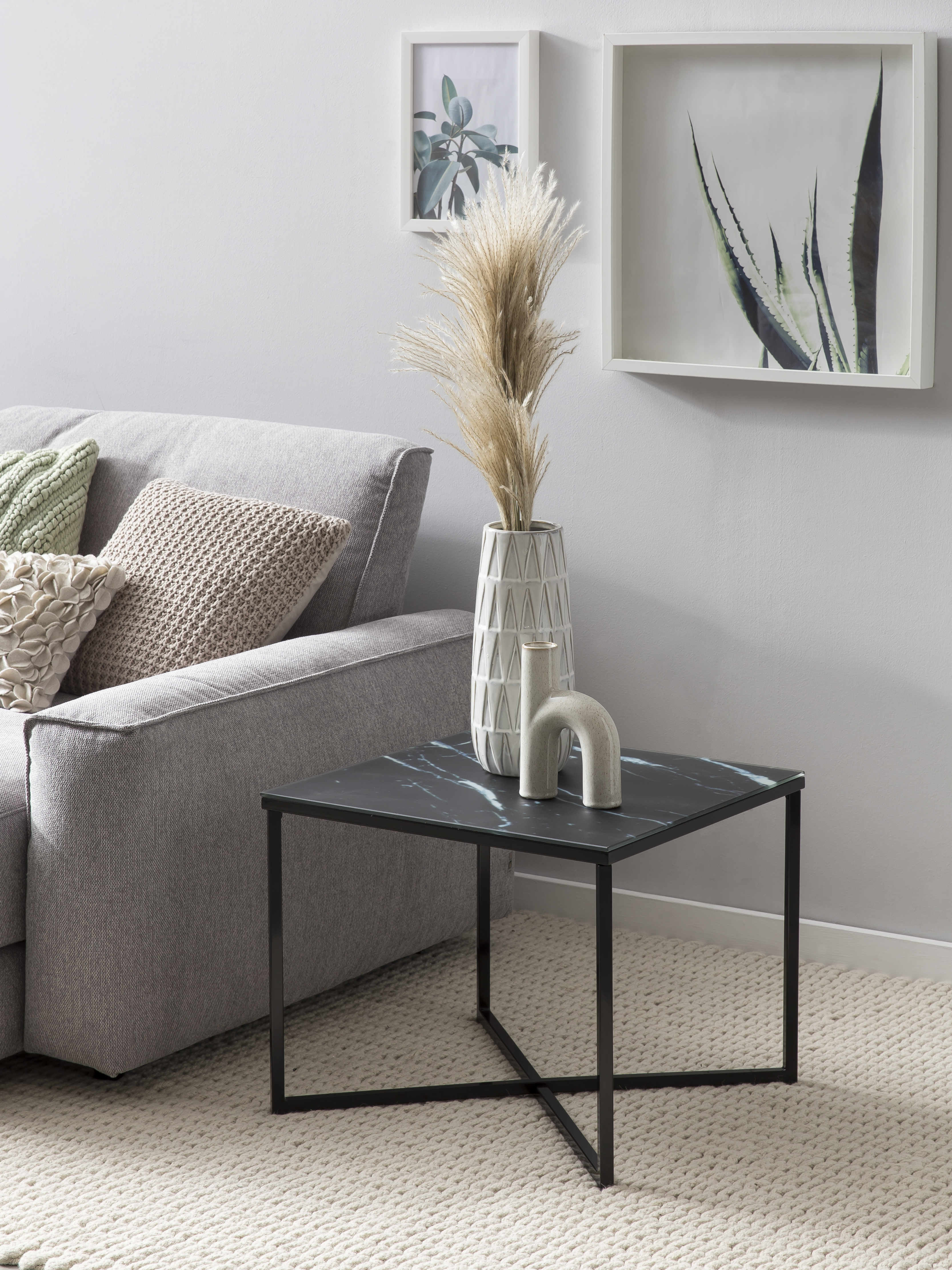 Tischplatte: Glas foliert in Marmoroptik in schwarz