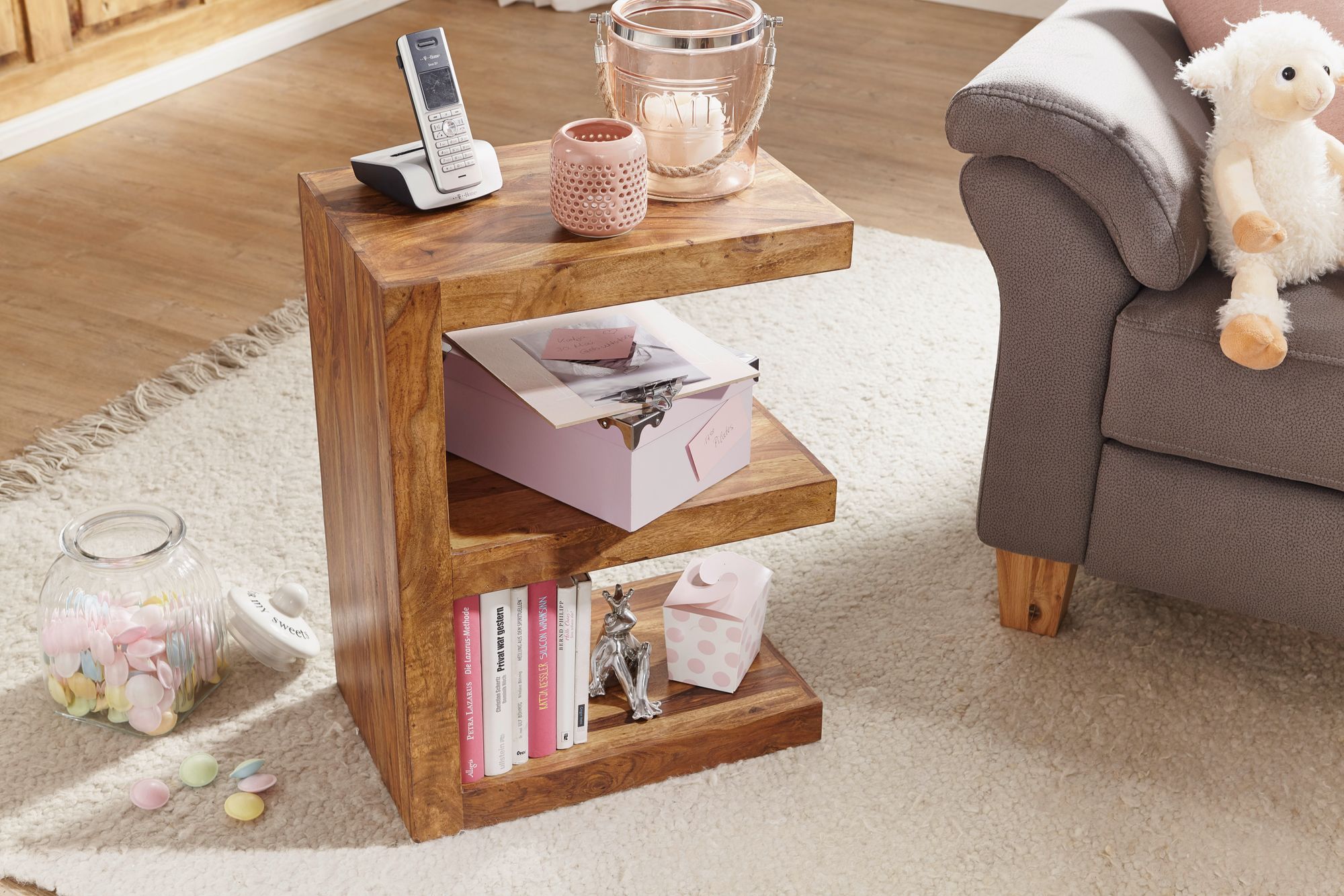Wofür geeignet? Mit einer Höhe von 60 cm ist der Tisch individuell einsetzbar - Durch die \"E\" Form entstehen weitere Ablagefächer für Zeitungen oder weitere Gegenstände.