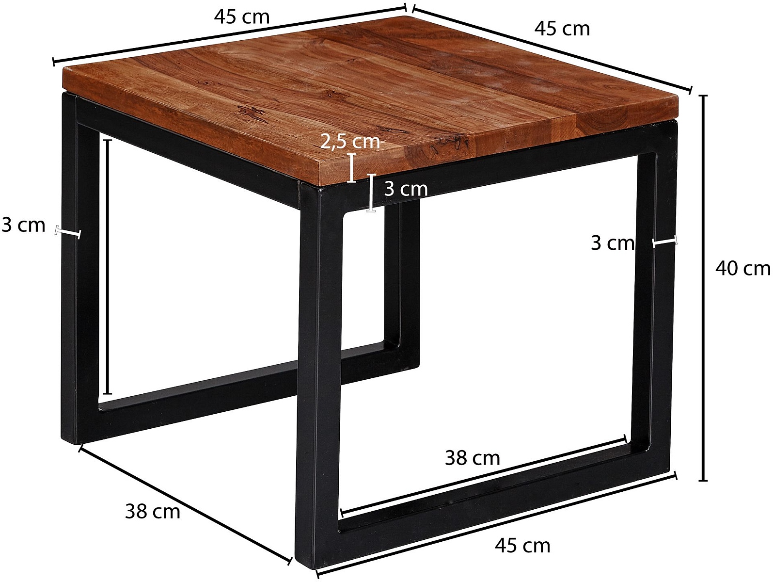 ABMESSUNGEN ✔ Breite: 45 cm // Höhe: 40 cm // Tiefe: 45 cm // Stärke der Tischplatte: 2,5 cm // Metallstärke: 3 cm // Maximale Belastbarkeit: 15 kg.