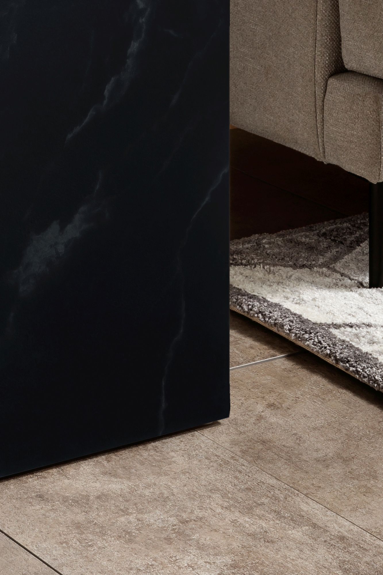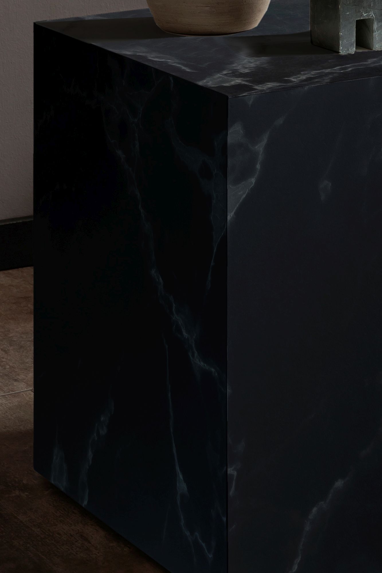 Dieser schicke Beistelltisch lässt Ihr Wohnzimmer gleich viel edler wirken. Die schlichte Würfelform mit viel Fläche bringt die tolle schwarze Marmoroptik besonders zur Geltung. Der Beistelltisch ist vielseitig einsetzbar, nicht nur neben der Couch, sondern auch als Nachttisch oder als freistehender Blickfang.