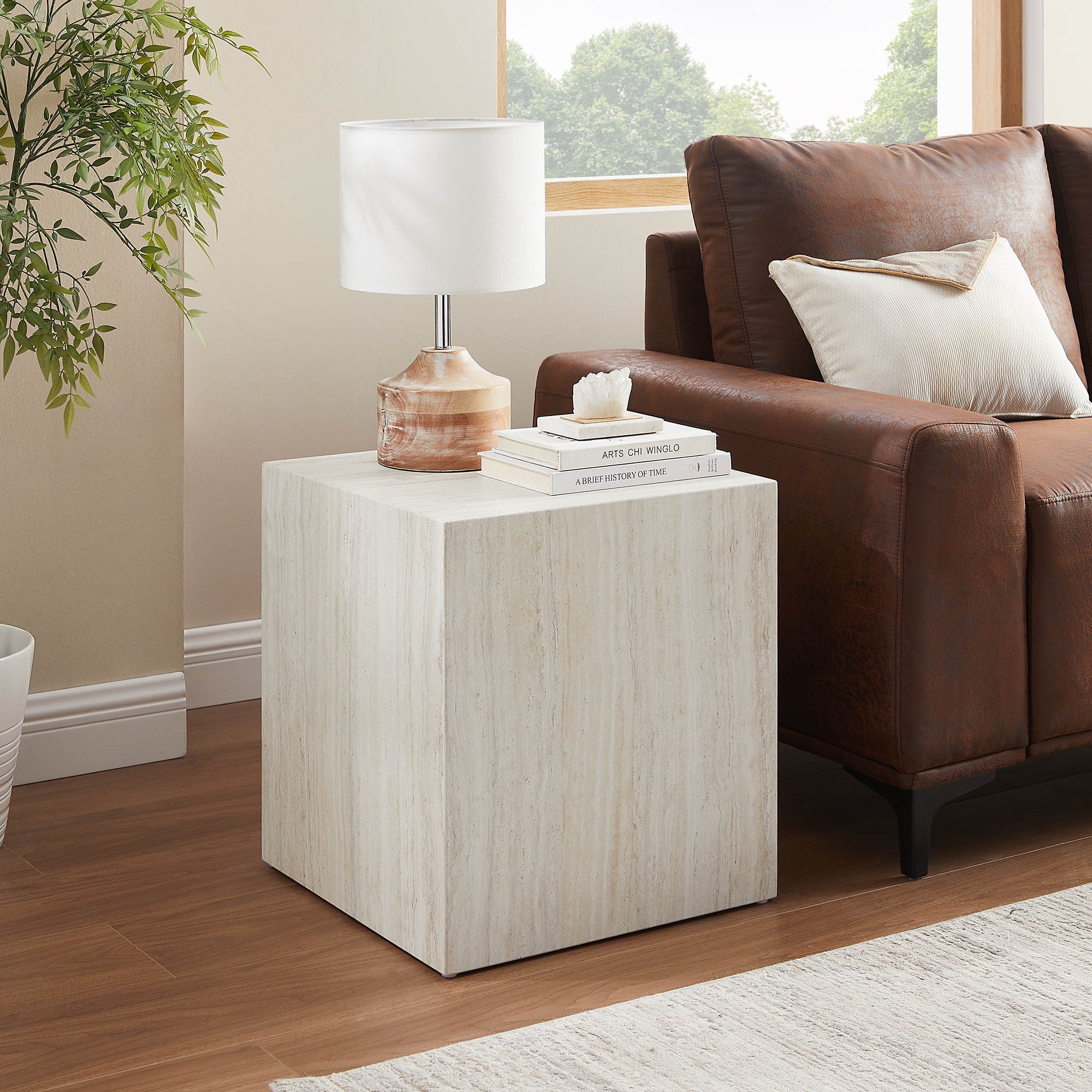 Dieser schicke Beistelltisch lässt Ihr Wohnzimmer gleich viel edler wirken. Die schlichte Würfelform mit viel Fläche bringt die tolle Travertinoptik besonders zur Geltung. Der Beistelltisch ist vielseitig einsetzbar, nicht nur neben der Couch, sondern auch als Nachttisch oder als freistehender Blickfang.