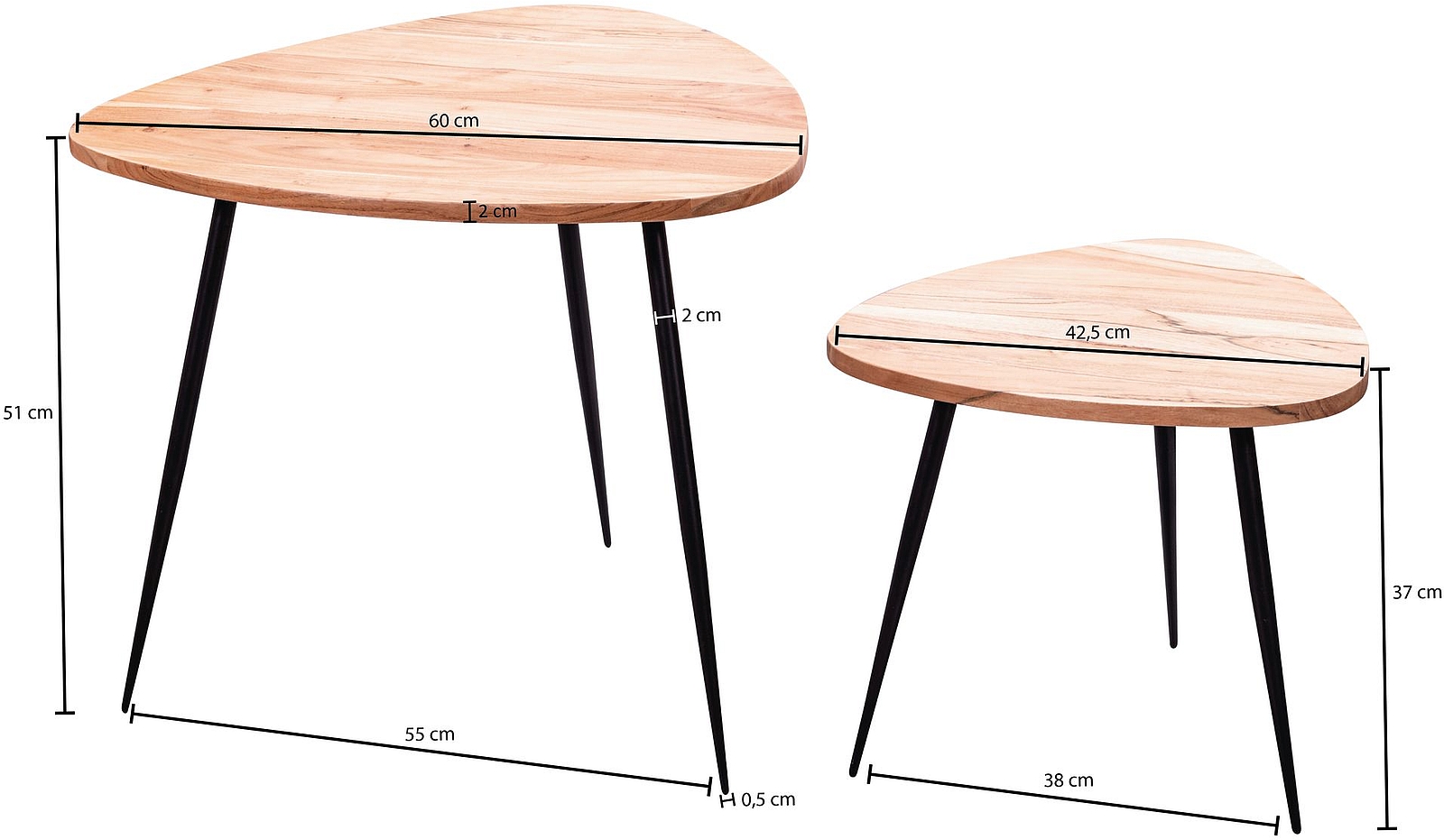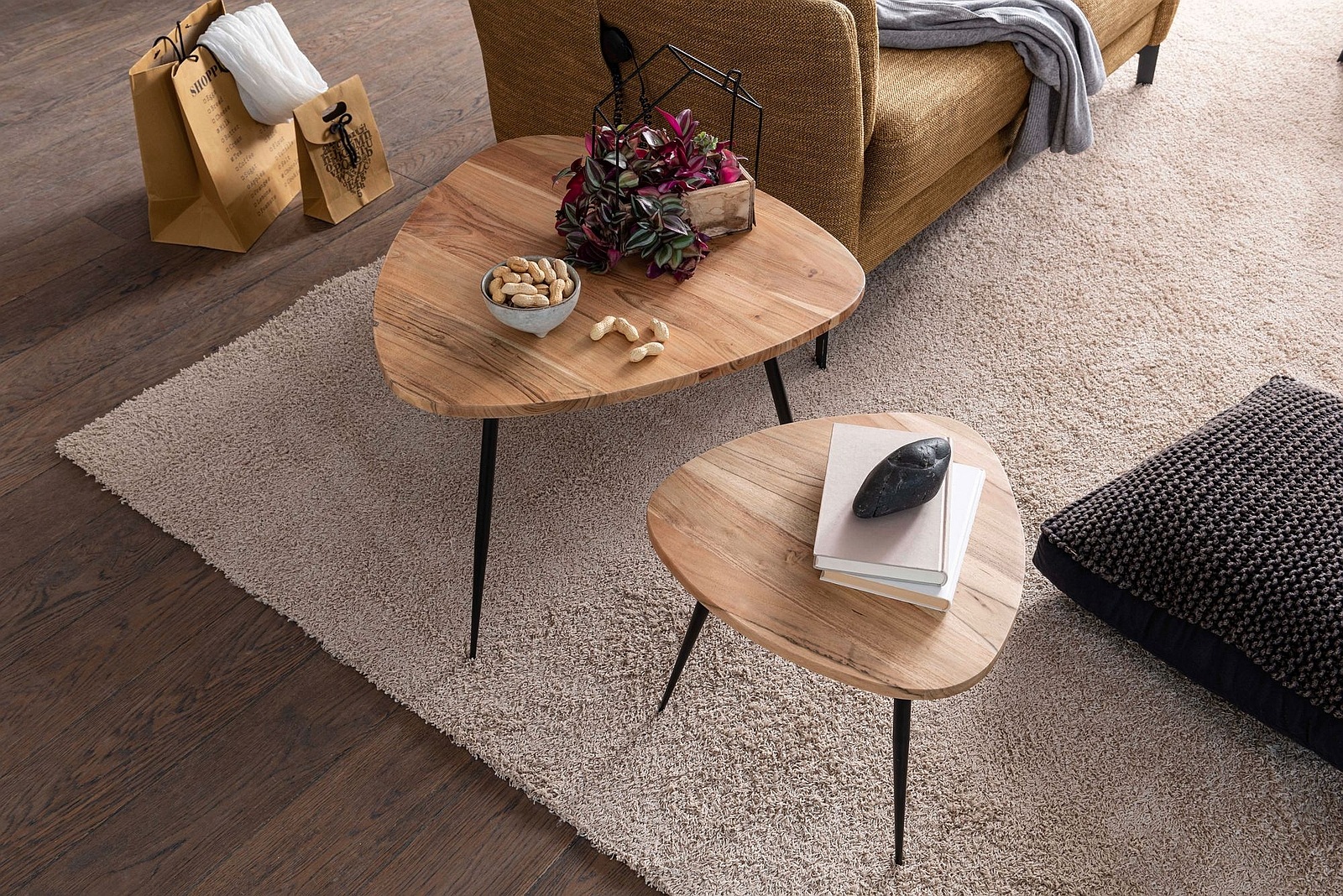- MATERIAL ✔ Die Tischplatten der kleinen Sofatische bestehen aus naturbelassenem Akazie Massivholz. Die drei eleganten Beine sind aus pulverbeschichtetem Edelstahl.