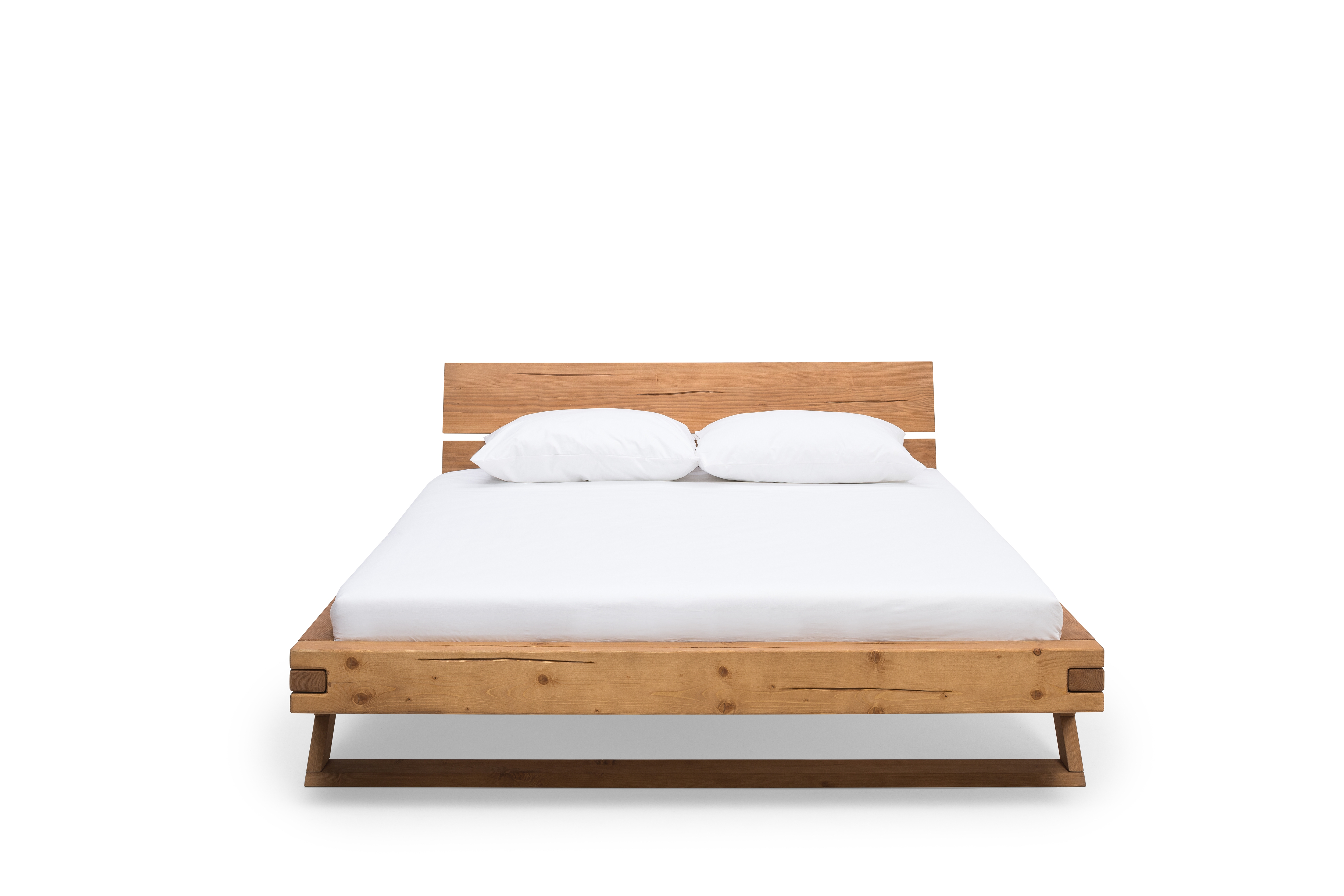 Mit diesem rustikalen Balkenbett aus hochwertigem Massivholz zieht urige Gemütlichkeit in das heimische Schlafzimmer ein. Das robuste Bettgestell aus massivem Fichtenholz bringt eine geballte Ladung Natur nach Hause und sorgt für Stabilität und Langlebigkeit. Fichtenholz ist dank seiner lebhaften Struktur eine beliebte Wahl für Massivholzmöbel. Wuchsrisse und Astlöcher im Holz machen das Bett zum faszinierenden Einzelstück mit markanter Ausstrahlung. Ein besonderer Hingucker bei diesem Balkenbett sind die charakteristischen Eckverbindungen. Diese unterstreichen nicht nur die solide Optik des Bettes, sie sorgen auch für höchste Belastbarkeit. Für einen modernen Twist sorgt das Gestell mit Y-Beinen und die abgeschrägten Holzkufen. Der massive Look des Holzbettes wird zudem durch das geteilte Kopfteil aufgelockert. Das solide Bett vereint auf charmante Weise den modernen Stil und traditionelle Fertigungsweise in einem langlebigen Möbelstück. Mit diesem Balkenbett zieht ein besonders pflegeleichtes Möbelstück in die eigenen vier Wände. Die geölte Oberfläche ist sehr pflegeleicht, strapazierfähig und schützt das Holz vor Staub und Verschmutzungen. Kleinere Verschmutzungen mit einem angefeuchteten Tuch abwischen.