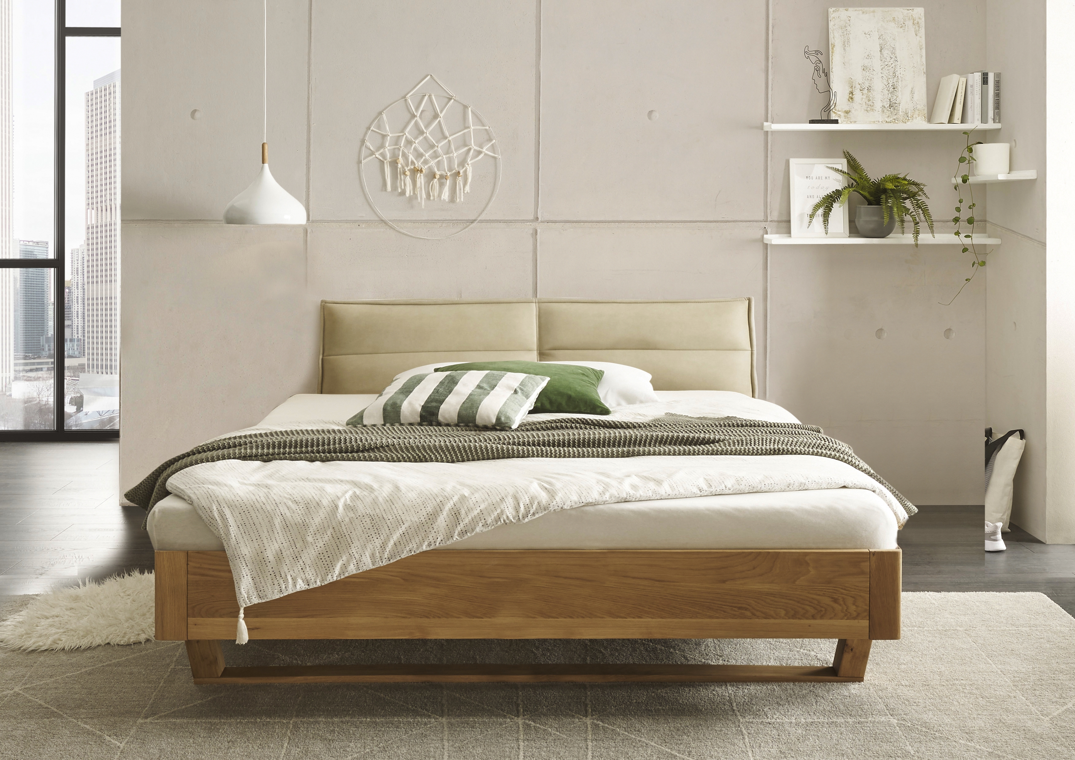 Bezug des Kopfteiles: Kunstleder in der Farbe beige aus 100% Polyurethan
