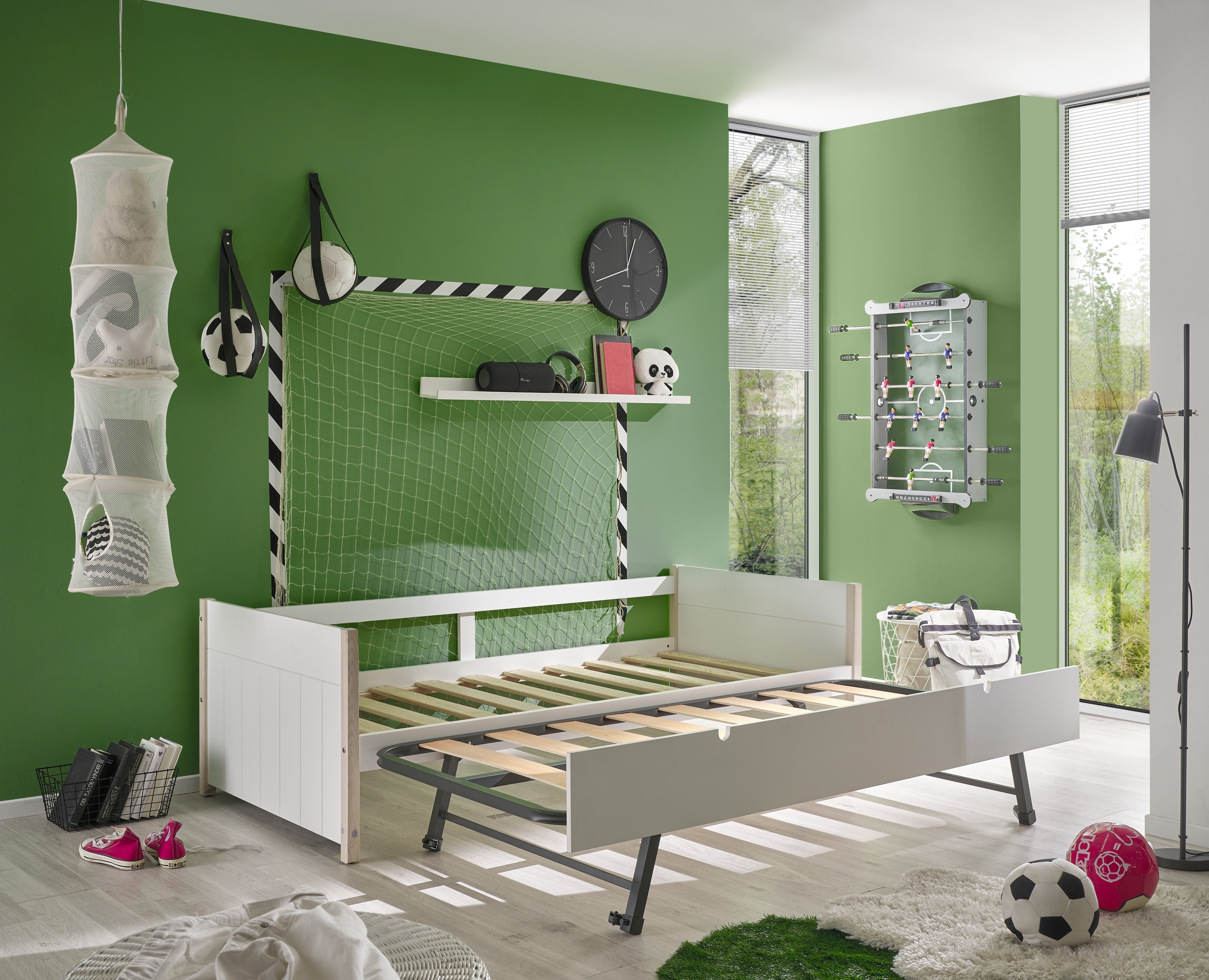 zusätzliche Liegefläche ist höhenverstellbar und kann auf das gleiche Höhenniveau wie das Hauptbett angeglichen werden