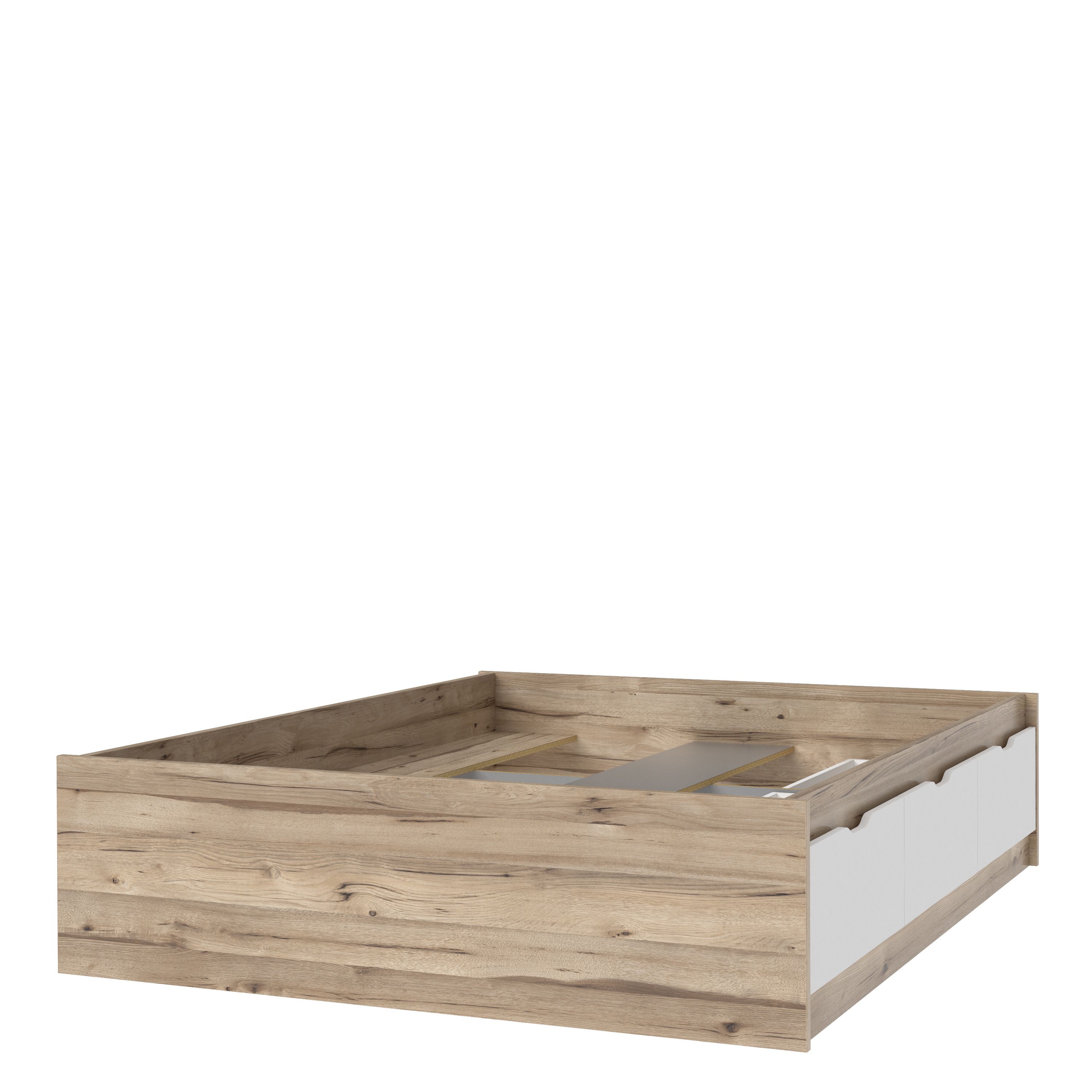 Planked Eiche Holznachbildung kombiniert mit Schubkastenfronten in Weiß