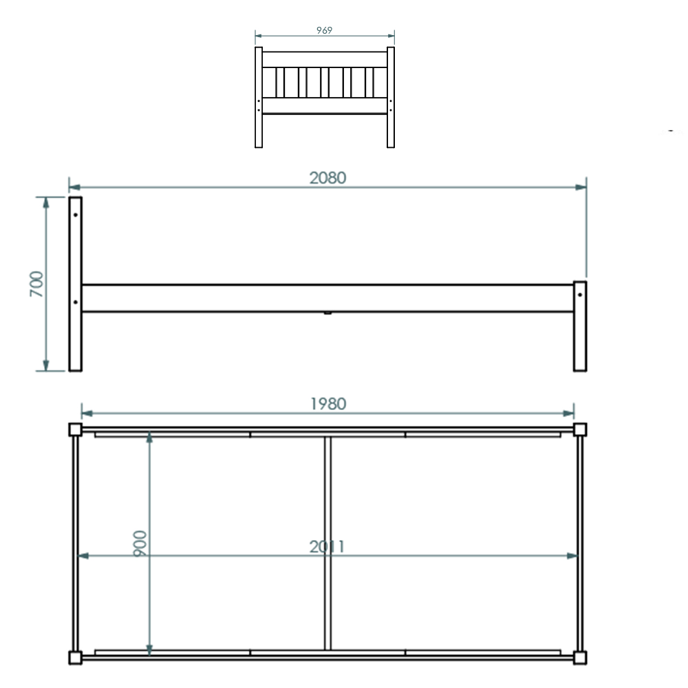 An der langen Seite haben Sie 188,50cm und an der kurzen Seite 87,50cm Platz zwischen den Bettfüßen.