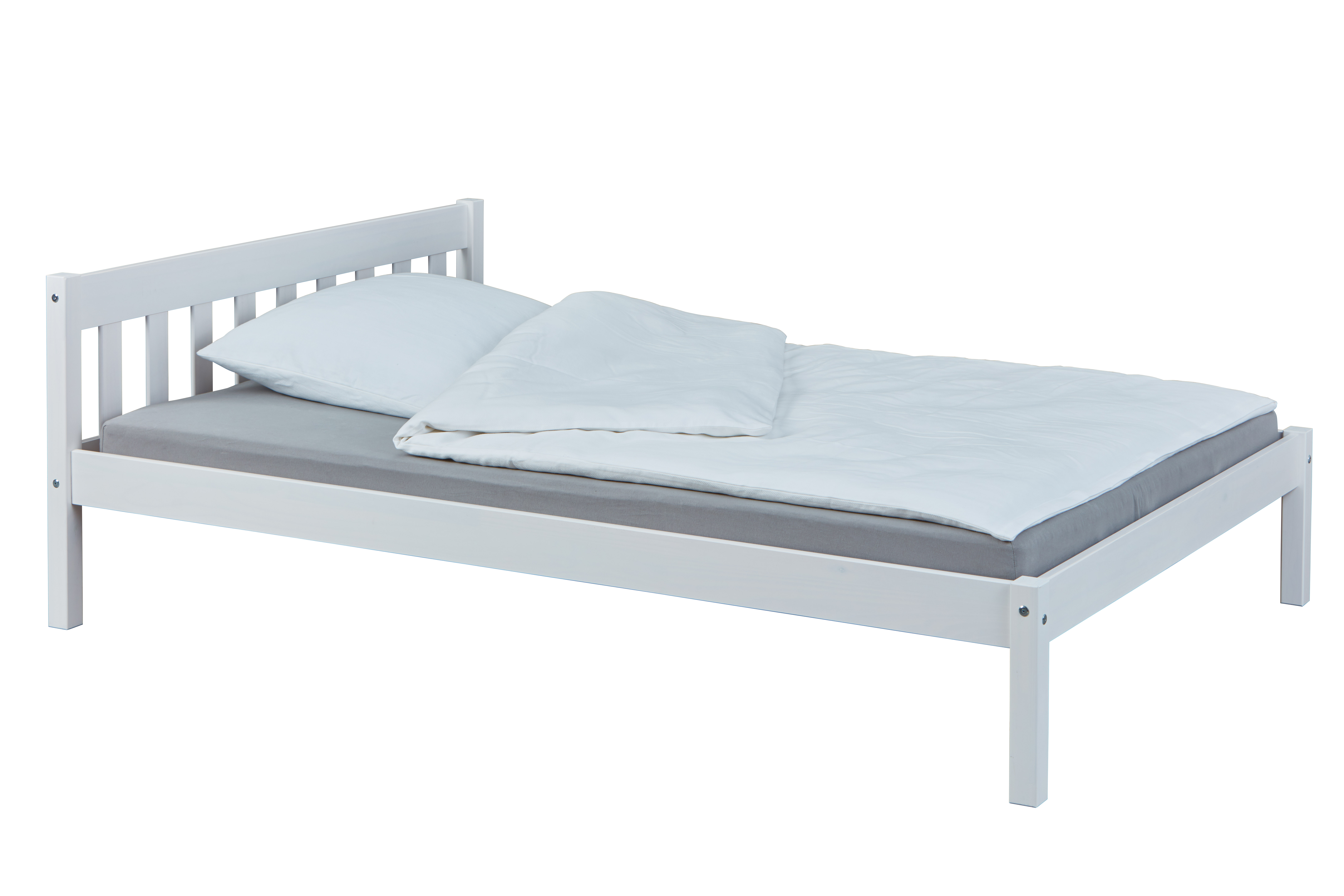 Vilmar schafft eine angenehme Schlafatmosphäre, die Wärme und Wohlbefinden ausstrahlt. Sein zeitloses Design und die solide Konstruktion sorgen für erholsamen Schlaf und einen entspannten Start in den Tag. Das Bett ist weiß lackiert, wobei die natürliche Holzmaserung leicht sichtbar bleibt. Der wasserabweisende und pflegeleichte Lack macht es besonders alltagstauglich.