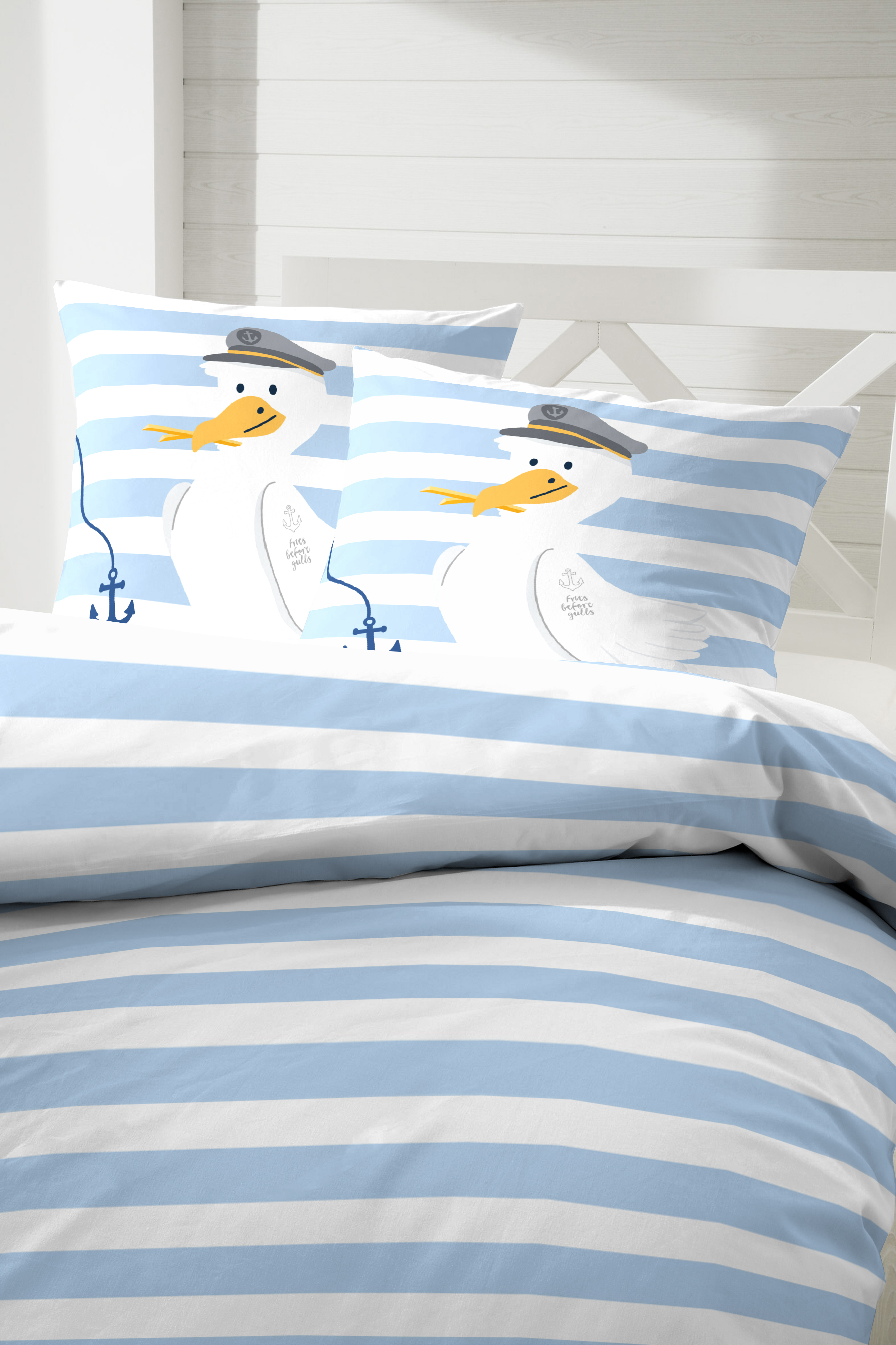 Farbe: weiss, blau, gestreift mit Mövenmotiv