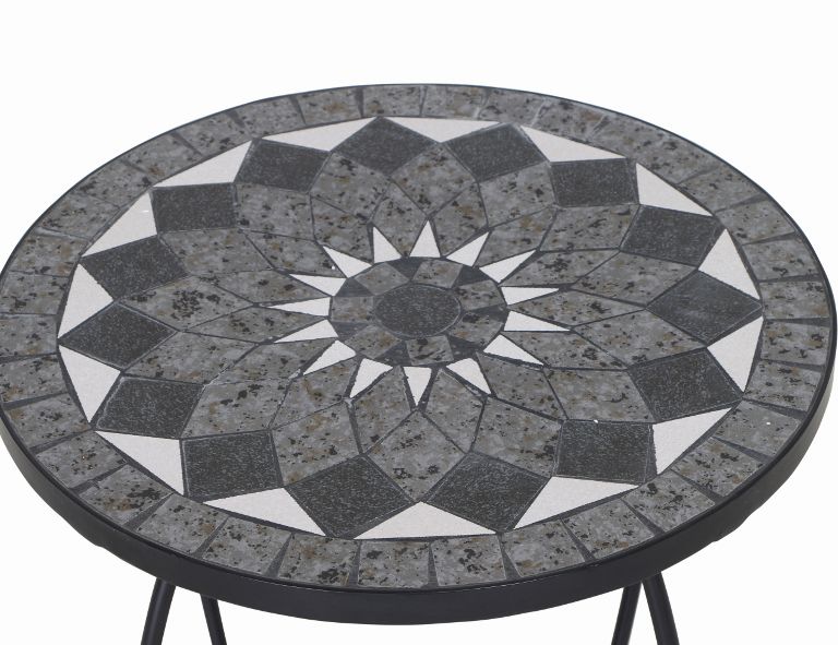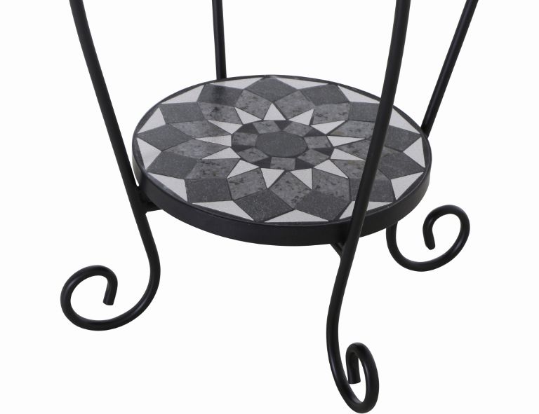 Eisen in matt schwarz pulverbeschichtet kombiniert mit Keramik Mosaik in dunkelgrau