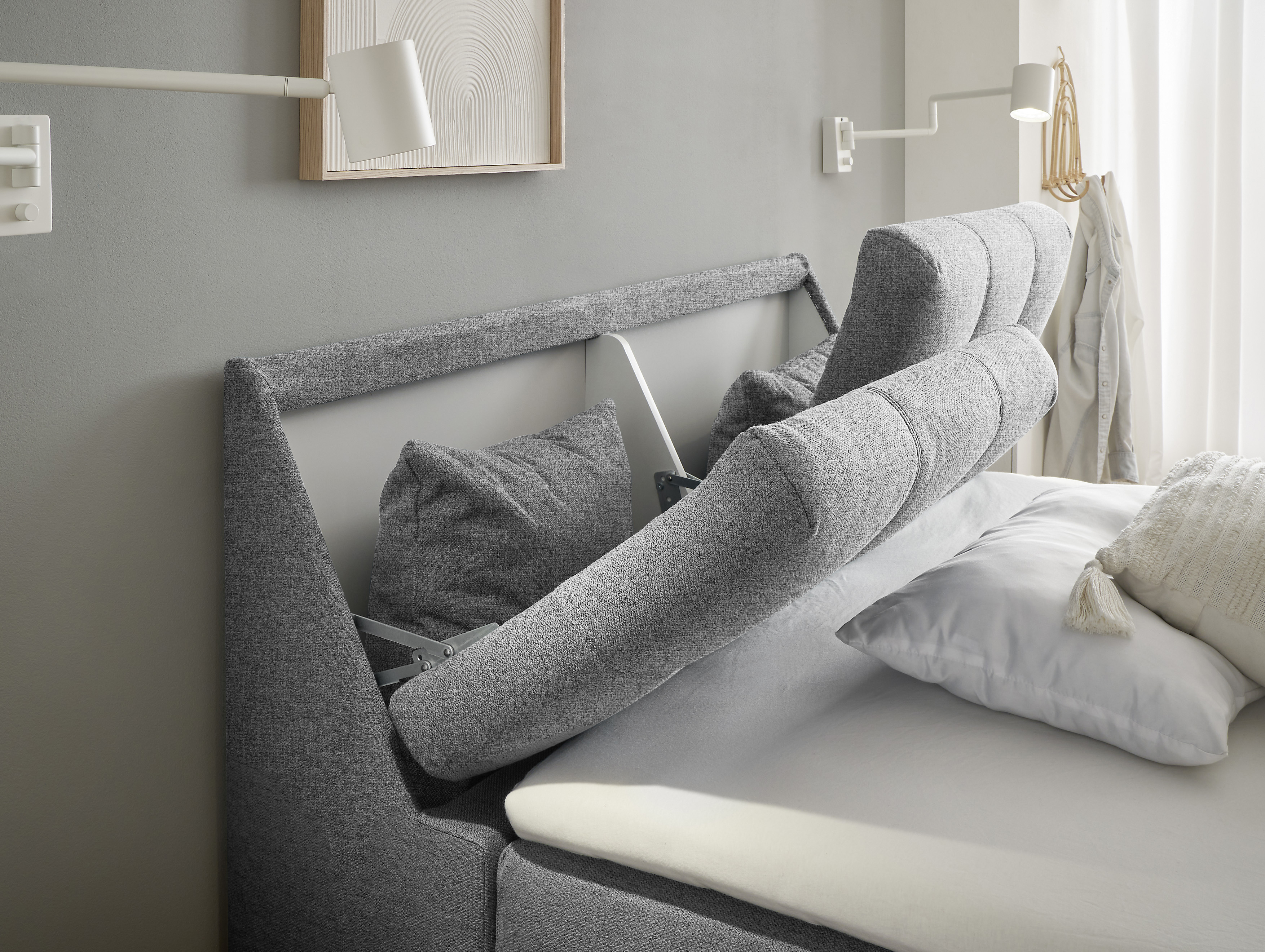 1 gestepptes Kopfteil mit Stauraum