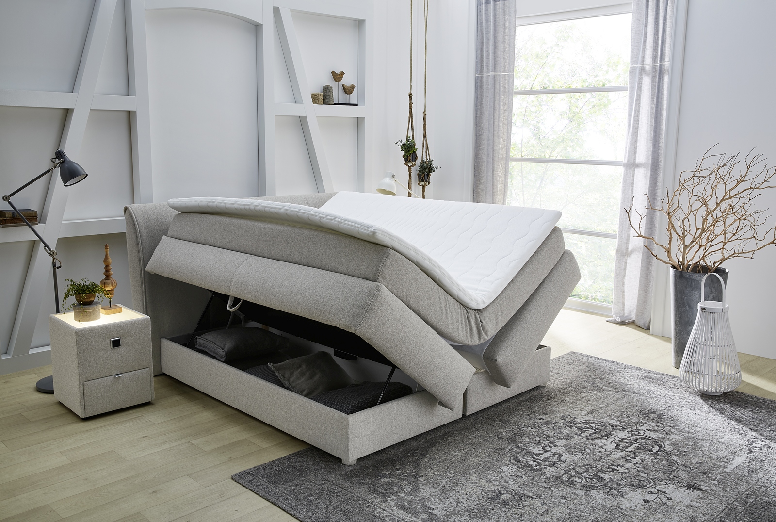 2 Boxen mit integrierten belüfteten Bettkästen, Liegepolster mit einer Bonell-Federkernpolsterung