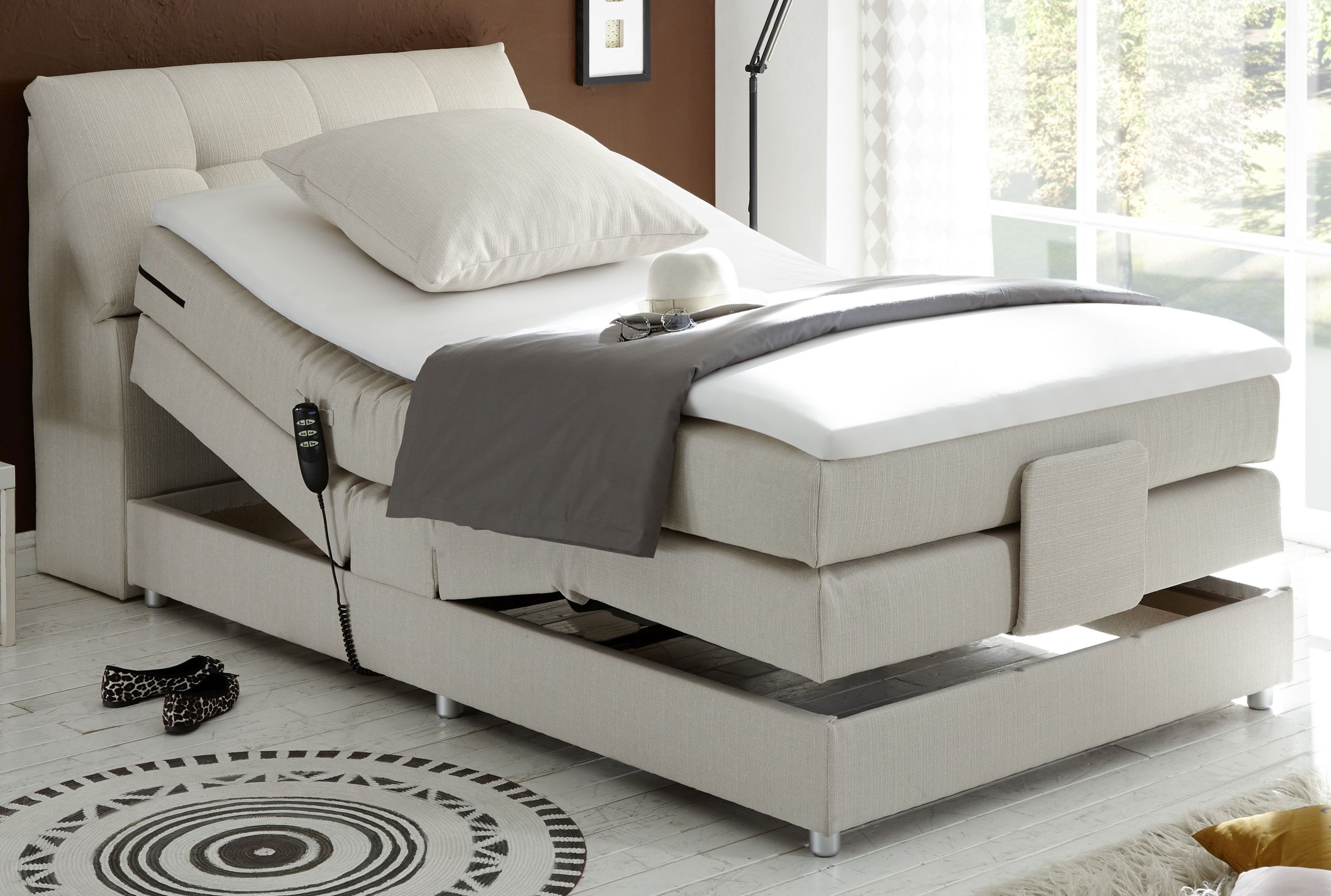 Springboxbett CARPINO 3, mit Motor verstellbar, aufklappbares Kopfteil