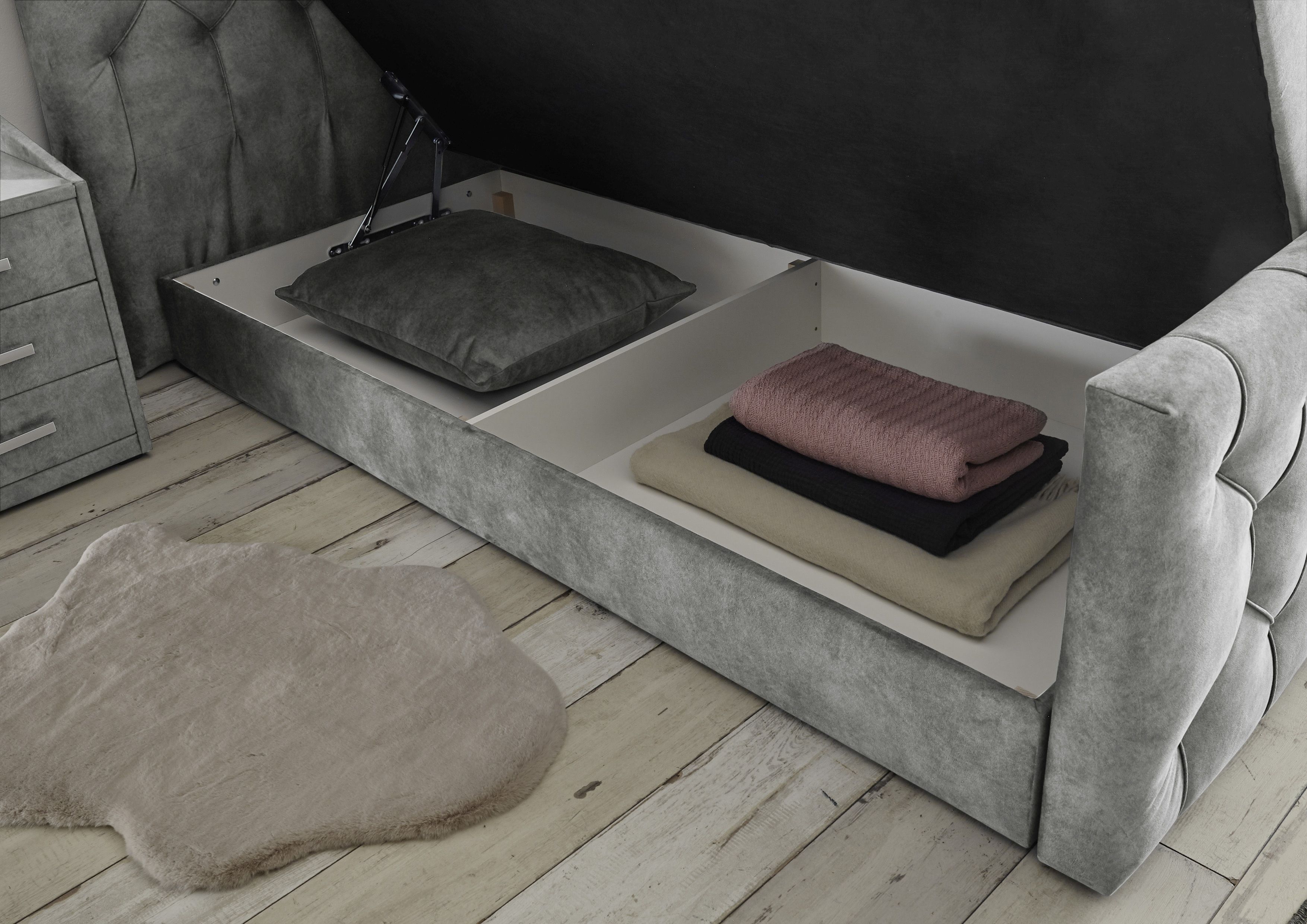 2 Boxen mit jeweils 1 geteiltem Bettkasten