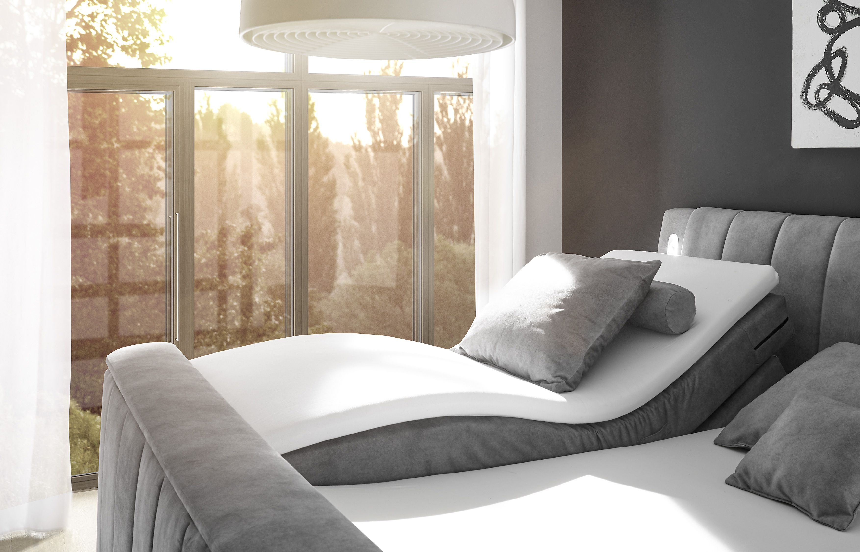 1 gepolstertes Fußteil mit Stauraum, geeignet für Fernseher bis 40" (motorisierte TV-Halterung)