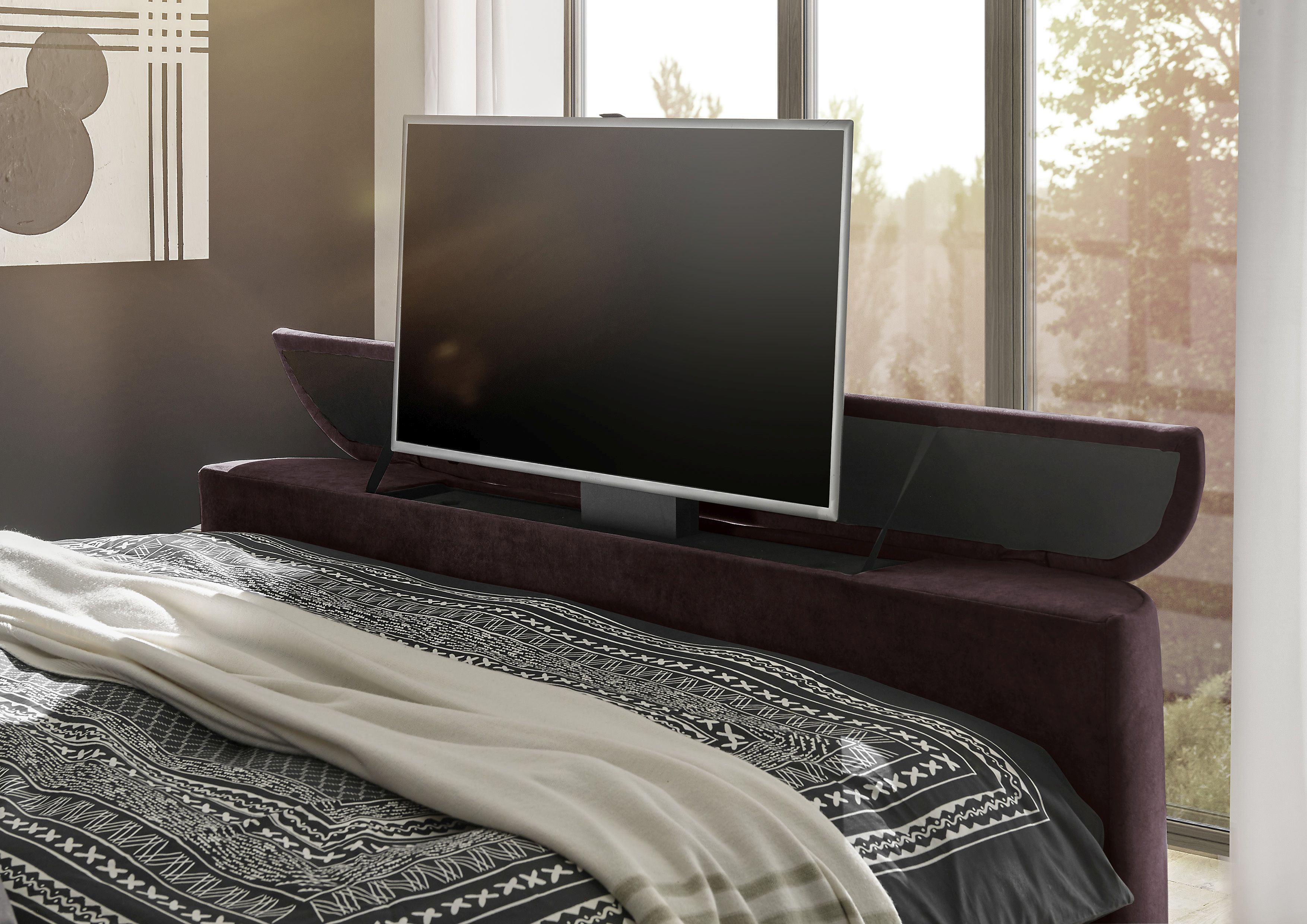 1 gepolstertes Fußteil mit Stauraum, geeignet für Fernseher bis 40" (motorisierte TV-Halterung)