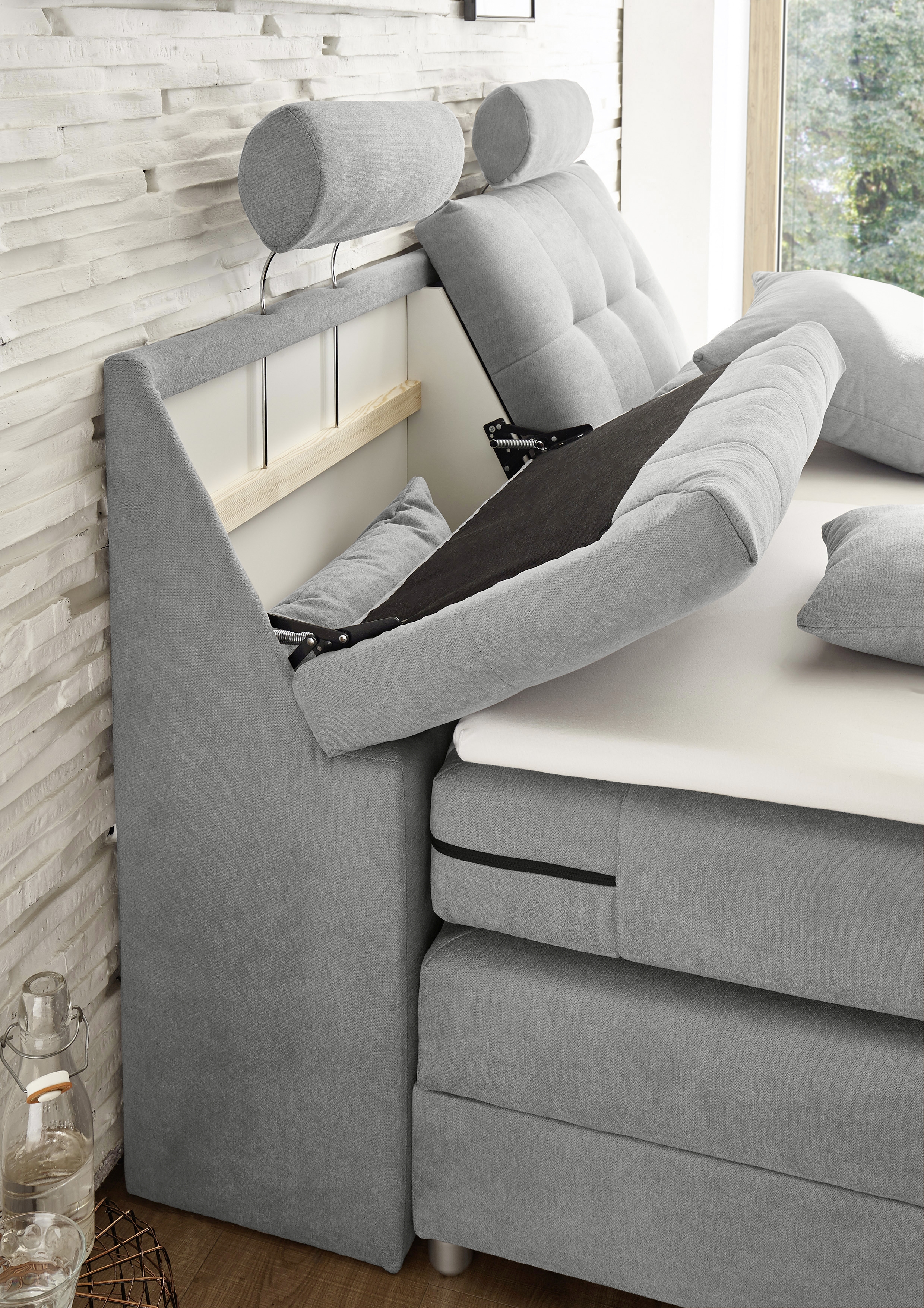 1 Kopfteil mit Steppung, Stauraum und 2 Kopfstützen
