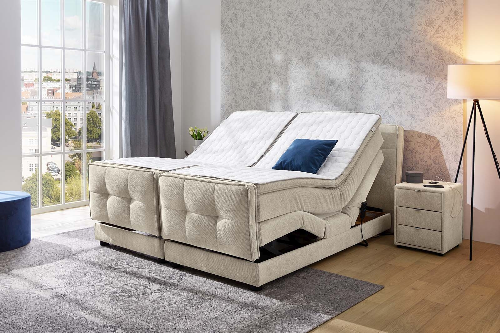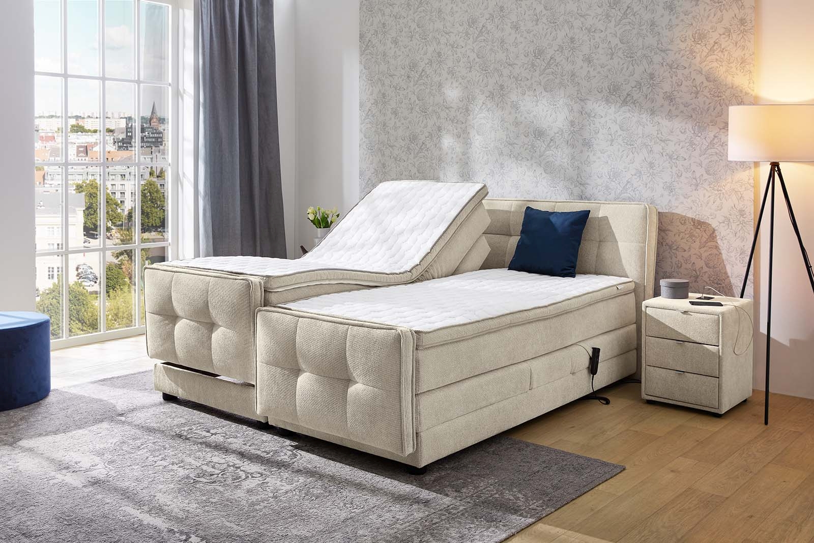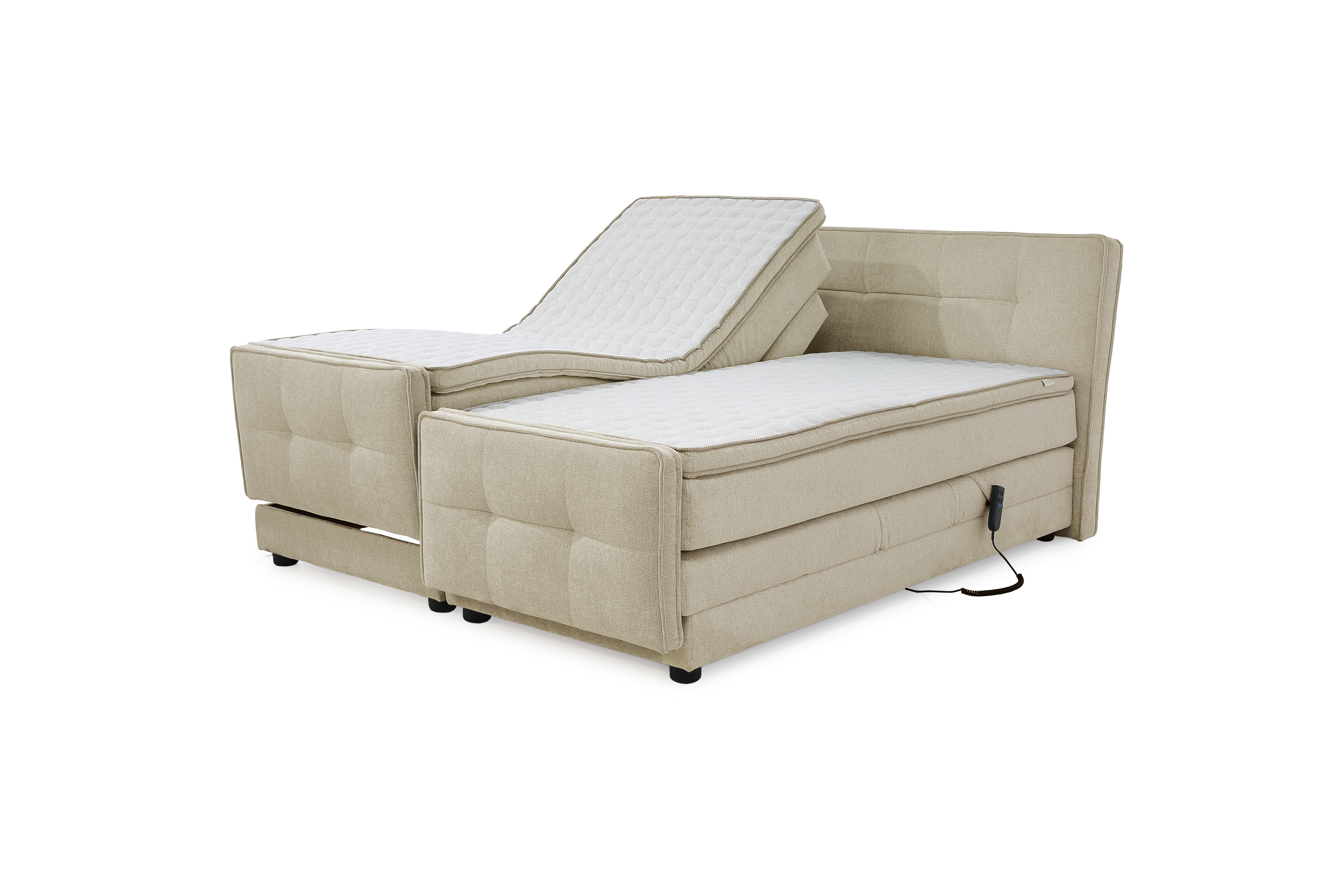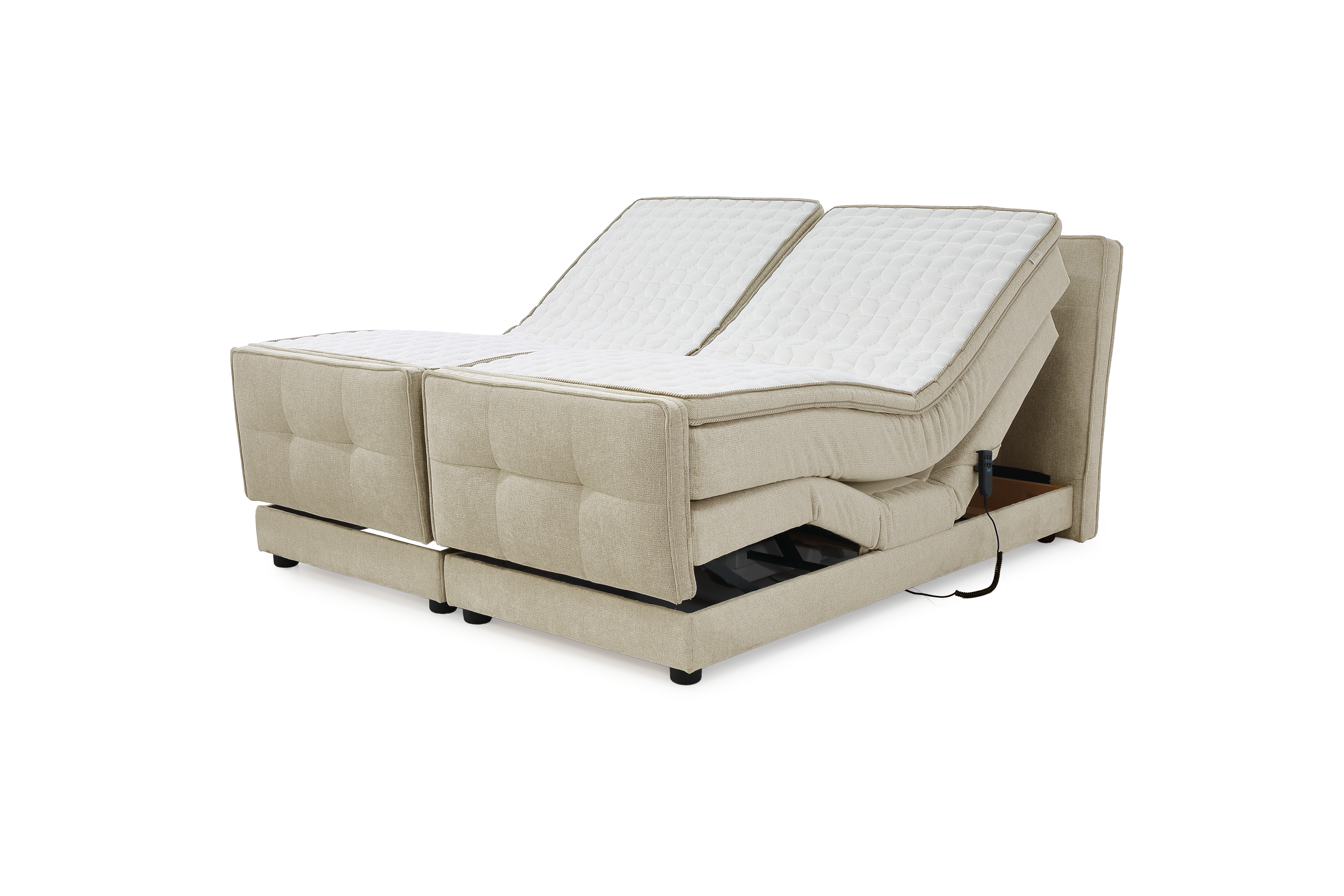 Neben der ganzen Flexibilität wurden beim Polsteraufbau 7-Zonen-Tonnentaschen-Federkern-Matratzen und der Dreamline-Kaltschaum-Topper gewählt, der sich durch eine besonders elegante Optik auszeichnet. Zusätzlich wurde der Fokus auf Stabilität und Langlebigkeit durch eine Belastbarkeit bis ca. 140 kg gesetzt. Robustes Design trifft auf vielseitige Funktionalität für langlebige Entspannung.