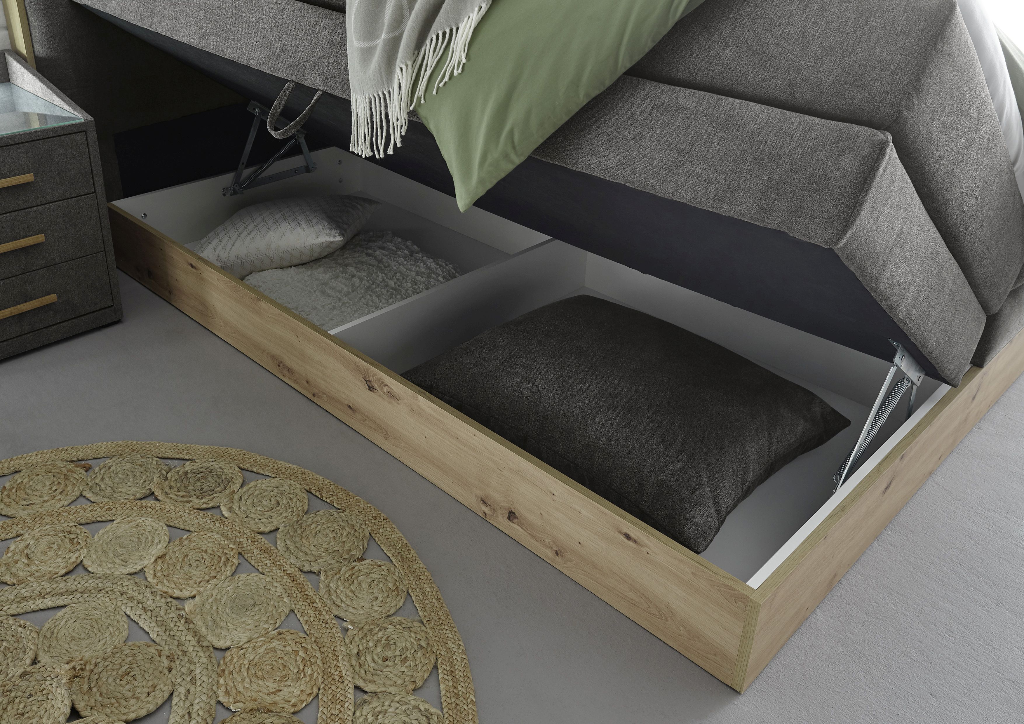 2 Boxen mit jeweils 1 geteilten Bettkasten