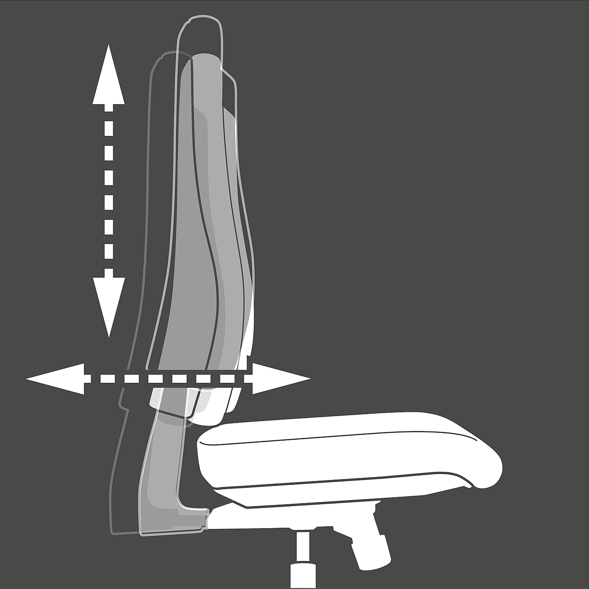 höhen- und tiefen- und neigungsverstellbare, ergonomische Rückenlehne zur Unterstützung einer gesunden Rückenhaltung