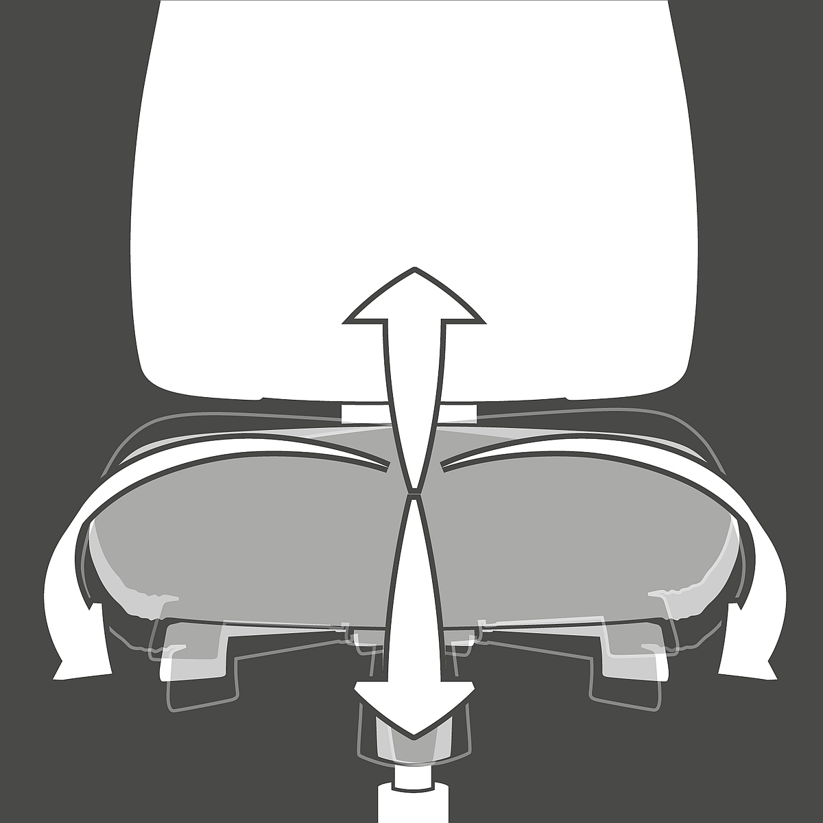Fitness-Orthositz mit integriertem Body-Balance-Tec-Gelenk für eine dreidimensionale Beweglichkeit der Sitz- und Rückenfläche