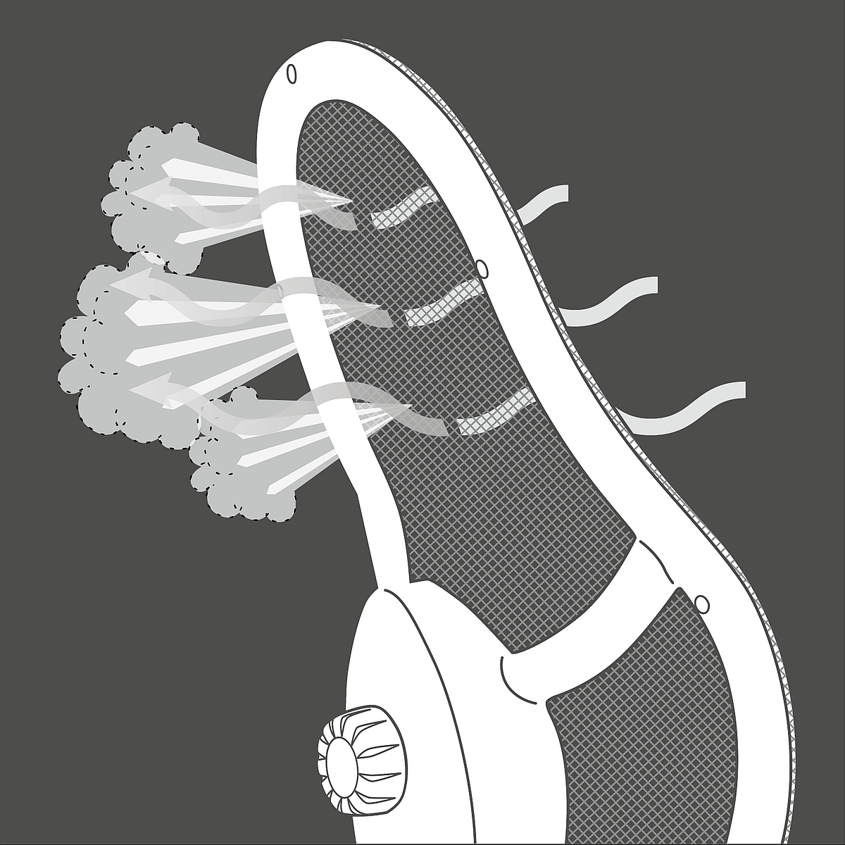 Bezug: Sitz und Kopfstütze in einem grauen Stoff (NORD WOOL) aus 75% Schurwolle und 25% Polyamid, Netzbezug im Rücken in schwarz