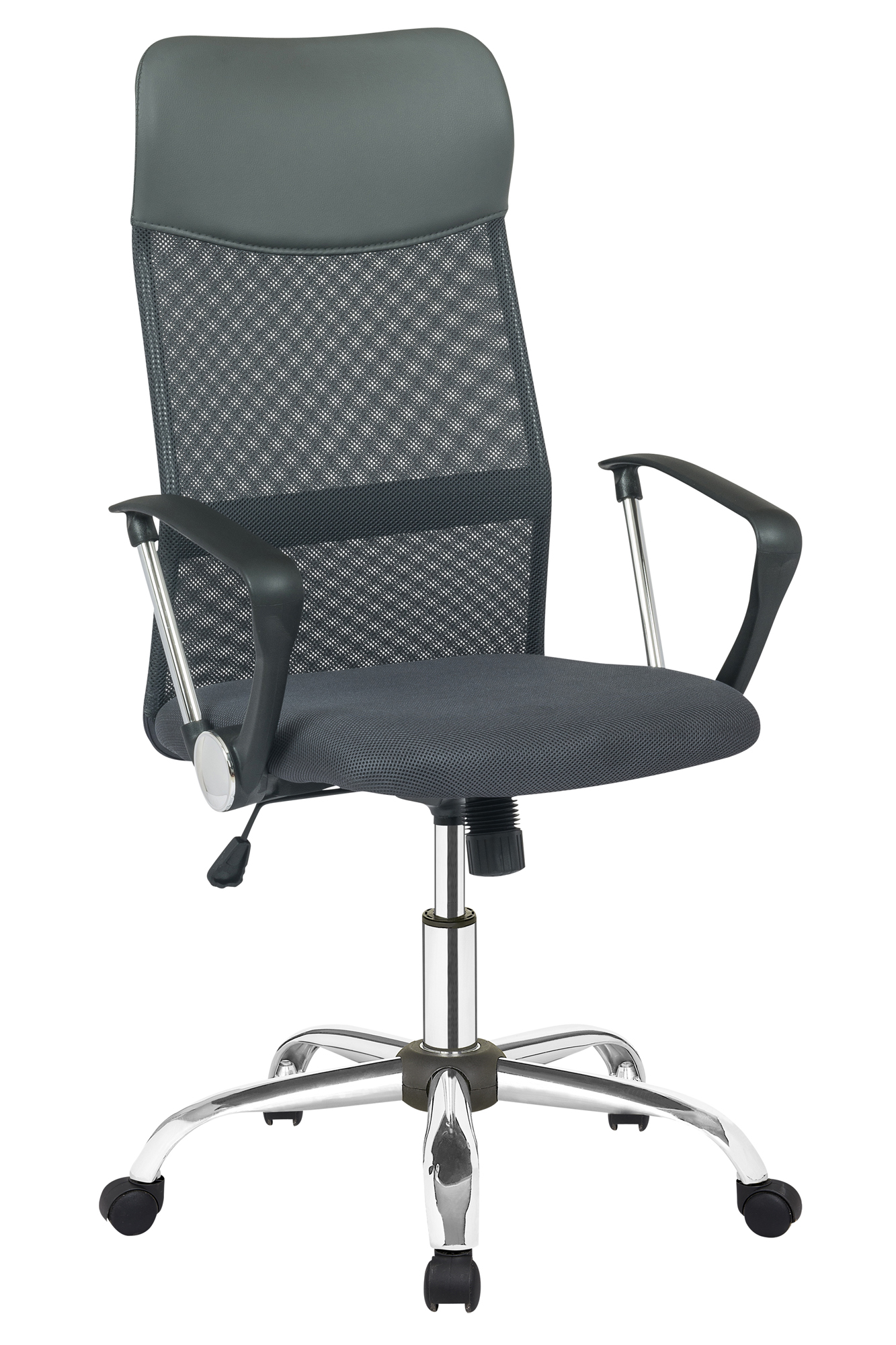 Bezug: Rückenlehne im Mesh-Look aus 100% Polyester; Kopfteil in Kunstleder in grau aus 100% Polyurethan