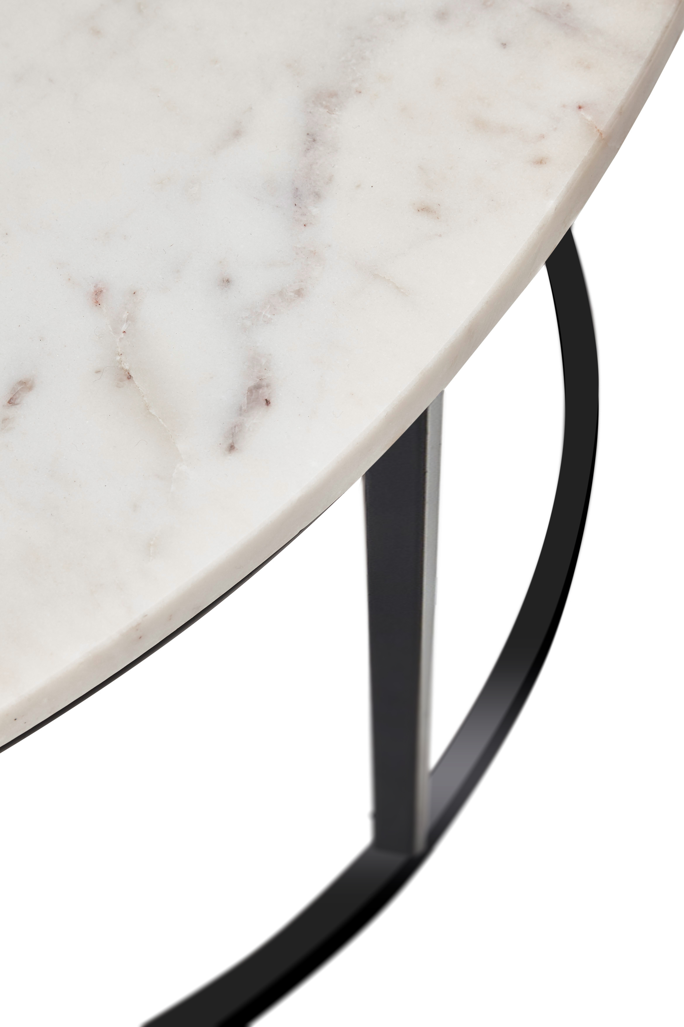 Die robuste Marmor-Tischplatte verleiht dem Möbelstück eine zeitlose, hochwertige Optik, die sich vielseitig mit unterschiedlichen Einrichtungsstilen kombinieren lässt. Das schwarze Metallgestell sorgt für sicheren Stand und stabile Langlebigkeit. Dank neutraler Farbgebung fügt sich der Tisch harmonisch in moderne Wohnräume ein und wird zum attraktiven Mittelpunkt im Wohnbereich.
