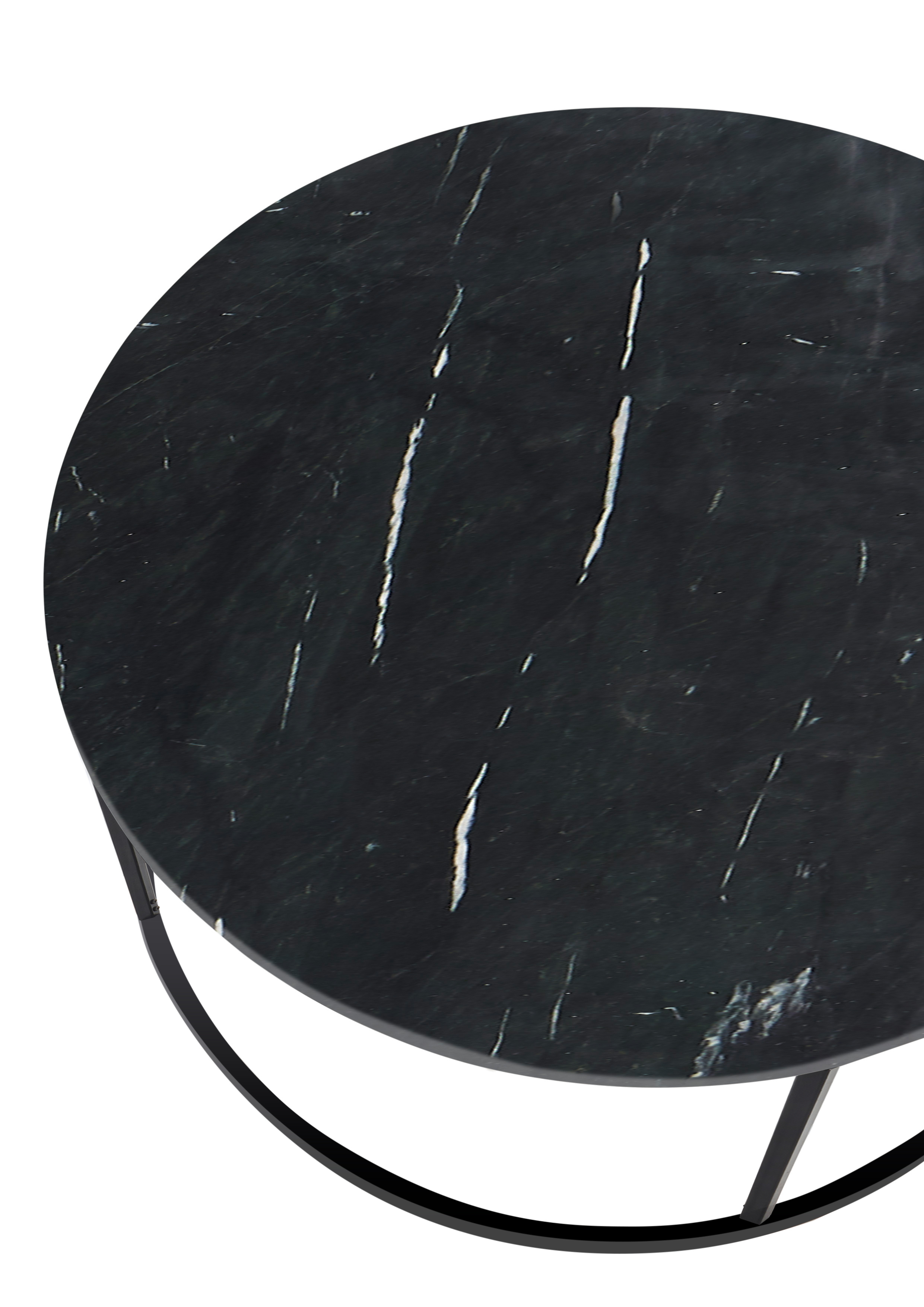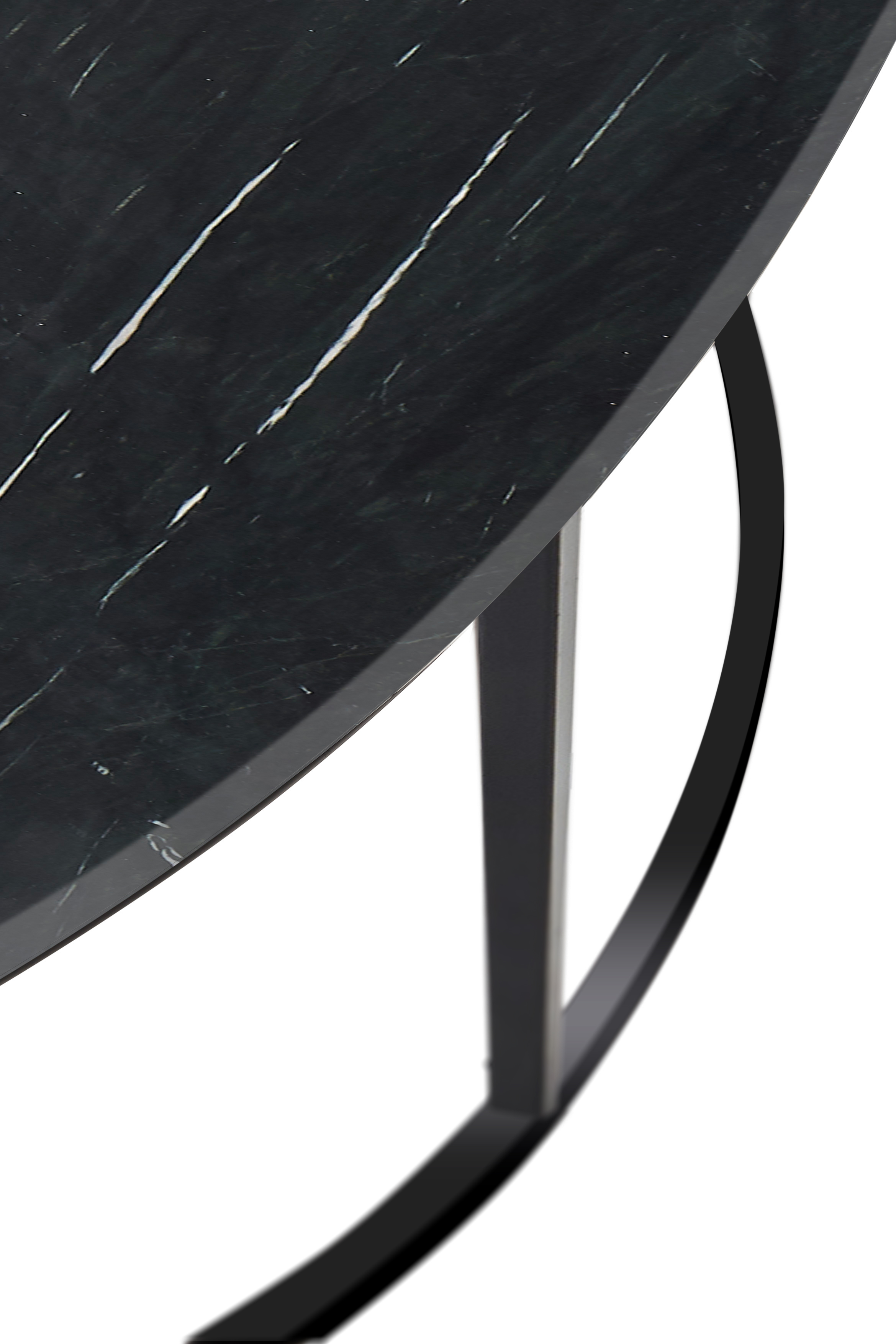 Die robuste Marmor-Tischplatte verleiht dem Möbelstück eine zeitlose, hochwertige Optik, die sich vielseitig mit unterschiedlichen Einrichtungsstilen kombinieren lässt. Das schwarze Metallgestell sorgt für sicheren Stand und stabile Langlebigkeit. Dank neutraler Farbgebung fügt sich der Tisch harmonisch in moderne Wohnräume ein und wird zum attraktiven Mittelpunkt im Wohnbereich.
