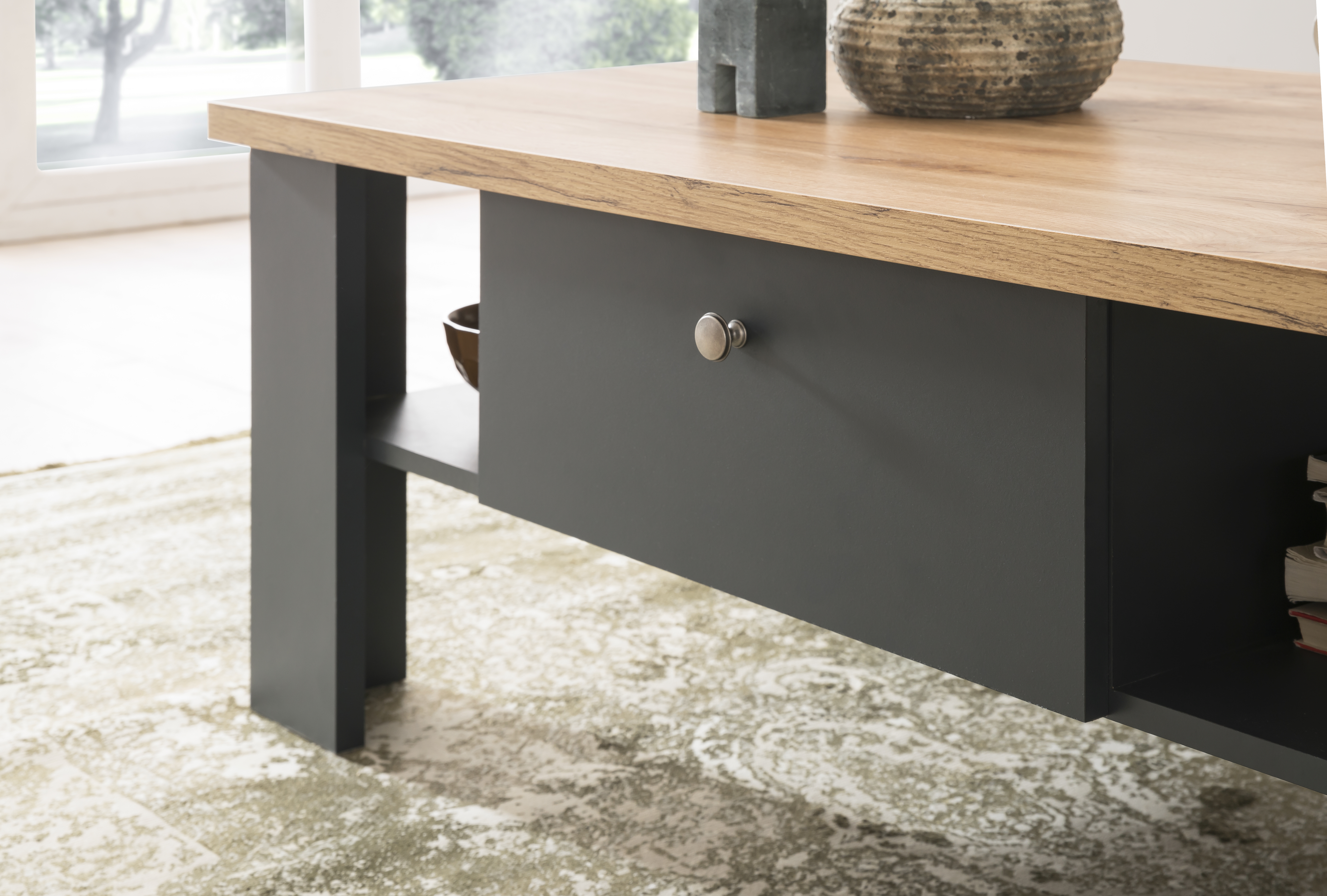 2 Schubkästen mit Soft-close unterhalb der Tischplatte