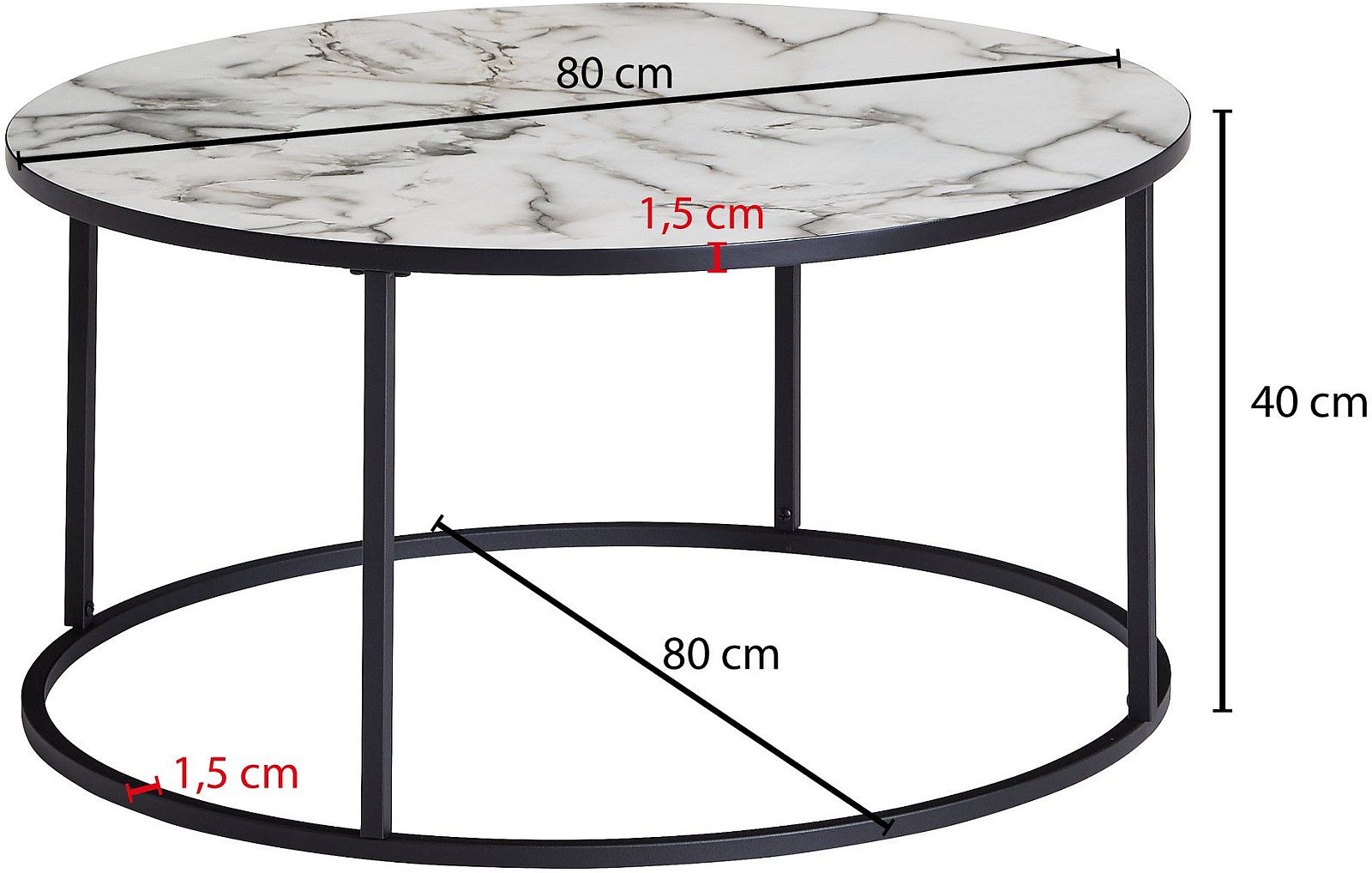 ABMESSUNGEN ✔ Breite: 80 cm // Höhe: 40 cm // Tiefe: 80 cm // Durchmesser Tischplatte: 80 cm // Tischplattenstärke: 1,5 cm.