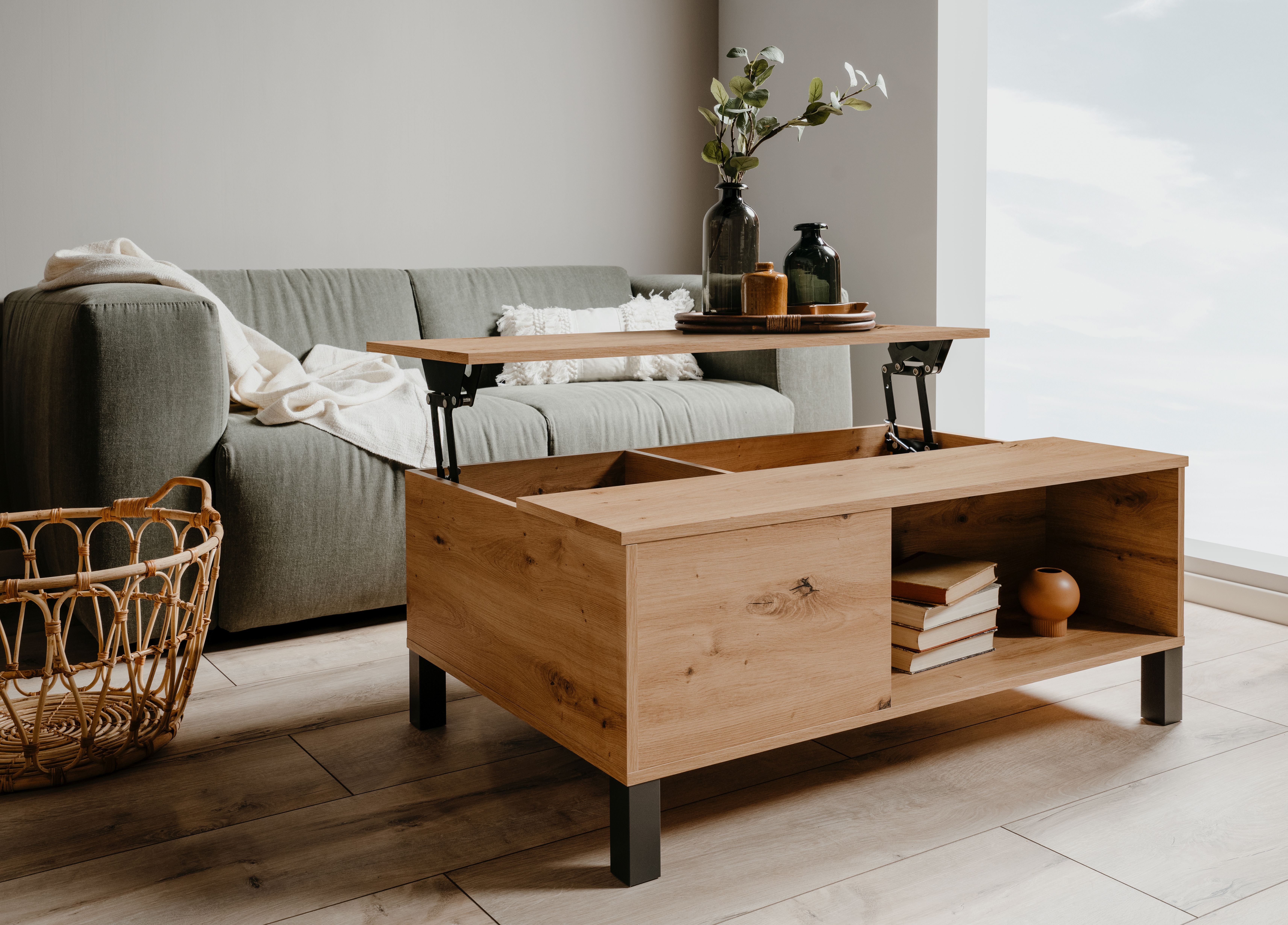 mit 1 großen offenem Fach und 1 herausklappbarem Tischelement