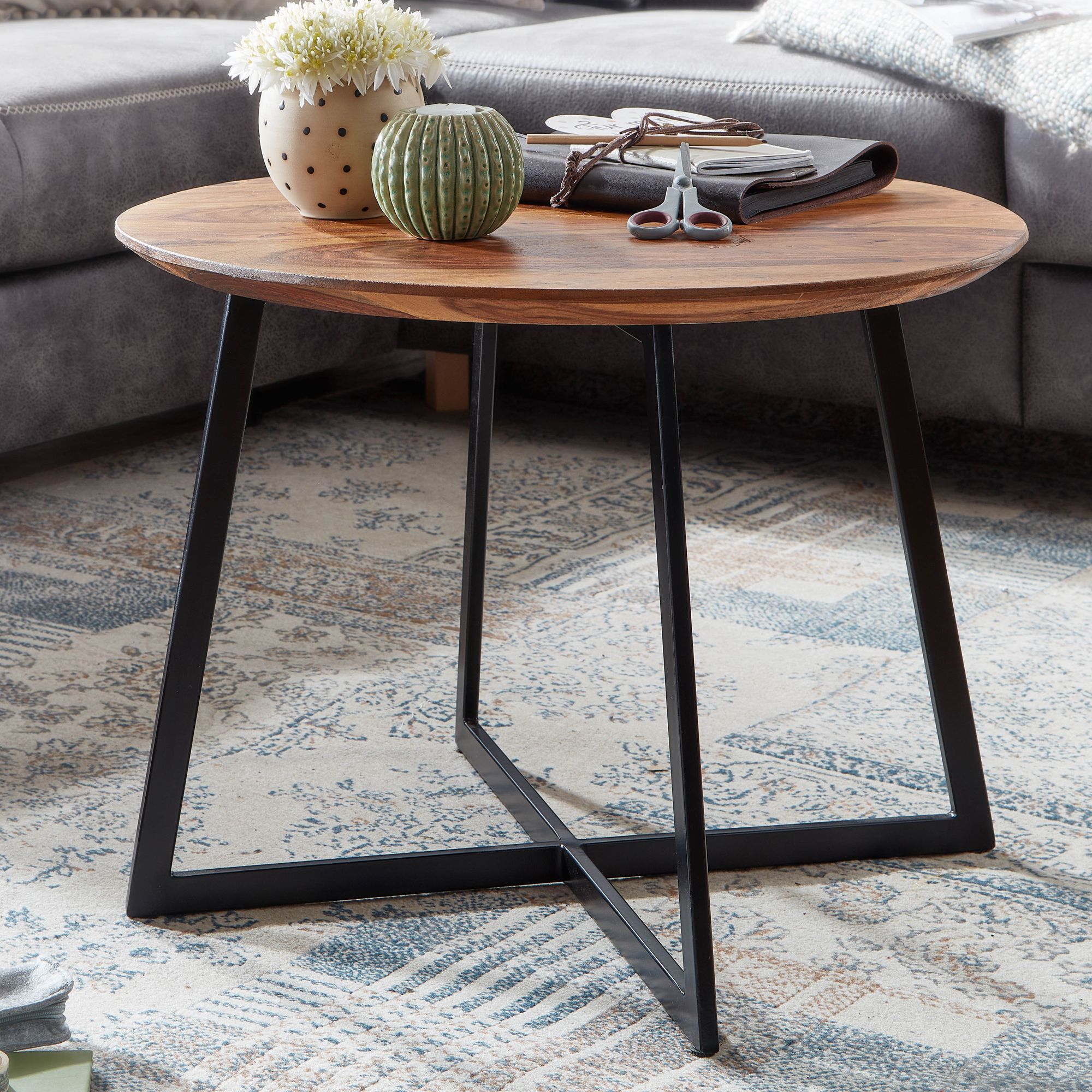 MATERIAL ✔ Die Tischplatte ist aus massivem Sheeshamholz gefertigt, welches mit schützendem Klarlack beschichtet ist. Das Gestell besteht aus pulverbeschichtetem Edelstahl.