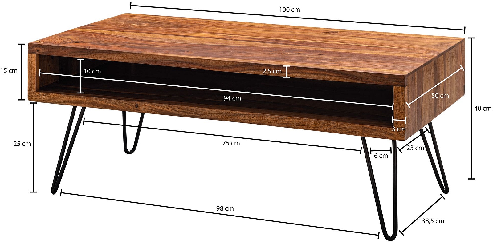 - HARMONIE IN VOLLEN ZÜGEN ✔ Liebhaber individueller Wohnträume kommen bei diesem Couchtisch voll auf Ihre Kosten. Warmes, ausdrucksstarkes Massivholz und filigrane Hairpin-Beine aus robustem Metall bilden eine harmonische Einheit. Lassen Sie mit diesem Tisch einen Hauch von Loft in Ihr Wohnzimmer einziehen!
