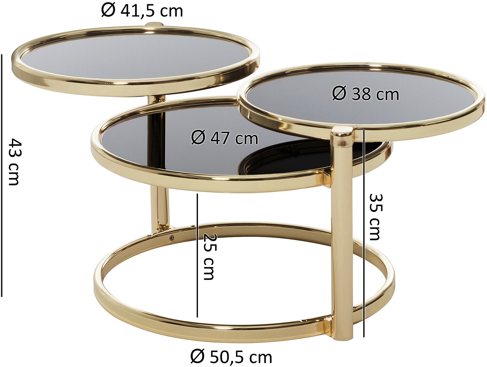 - UNWIDERSTEHLICH ✔ Ein wunderschönes Metallgestell und drei spiegelnde Tischplatten aus Sicherheitsglas lassen Ihre Augen erleuchten. Die drei schwenkbaren Ebenen des Sofatisches setzen dem ganzen die Krone auf. Denn dadurch lässt sich der Tisch auf eine Breite von 139 cm ausfahren und hält so Getränke, Snacks, Handy und Co. immer griffbereit. Wenn der gemütliche Fernsehabend zu Ende geht, schwenken Sie die Ablageflächen ganz einfach und platzsparend ein.