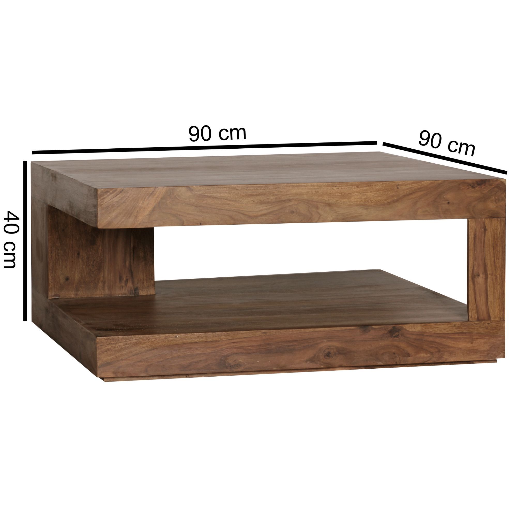 Wofür geeignet? Mit einer Breite von 90 cm und einer Tiefe von 90 cm passt er perfekt ins Wohnzimmer und bietet ausreichend Abstellmöglichkeiten für gemütliche Abende auf der Couch.