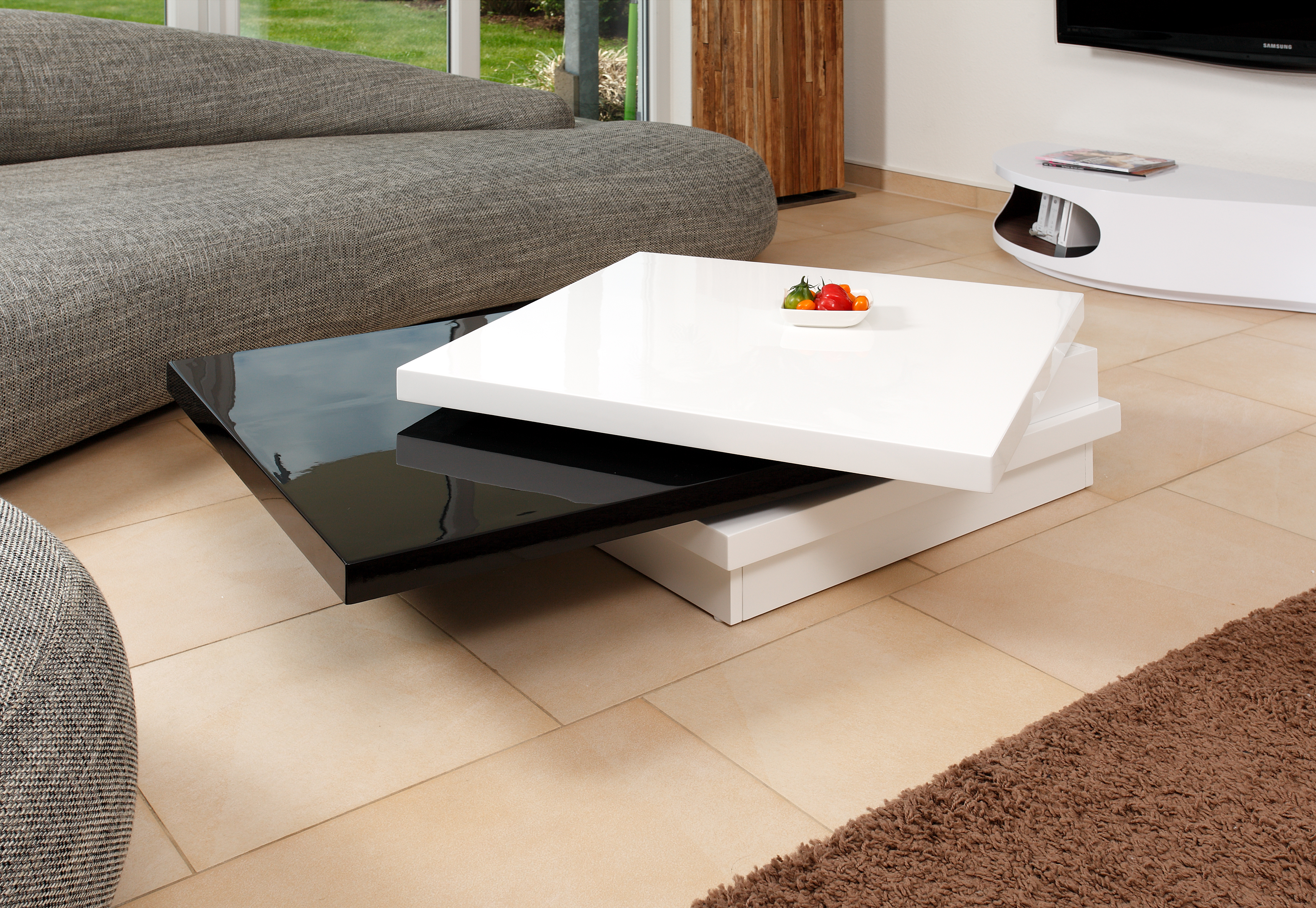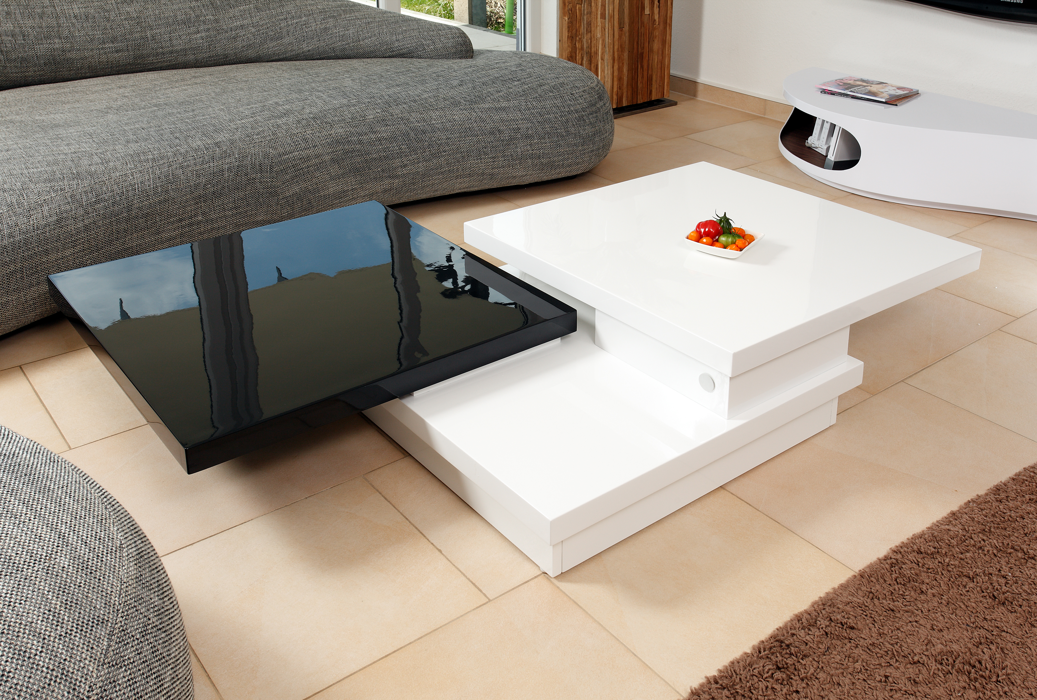 - in Hochglanz weiß und Hochglanz schwarz lackiert