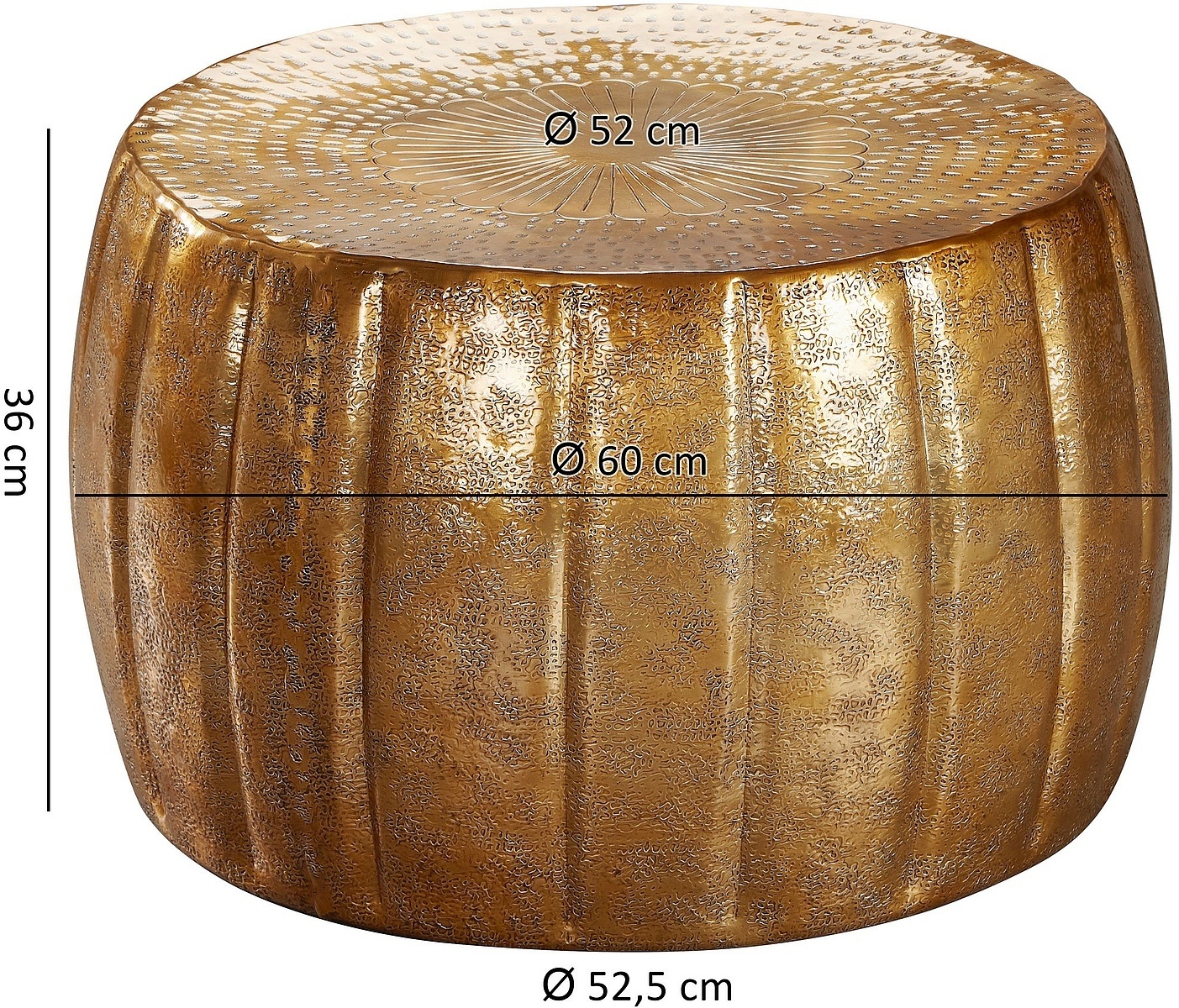 - LIEFERUMFANG ✔ Ein runder Alu-Couchtisch ohne Dekoration // Lieferung erfolgt bereits montiert.