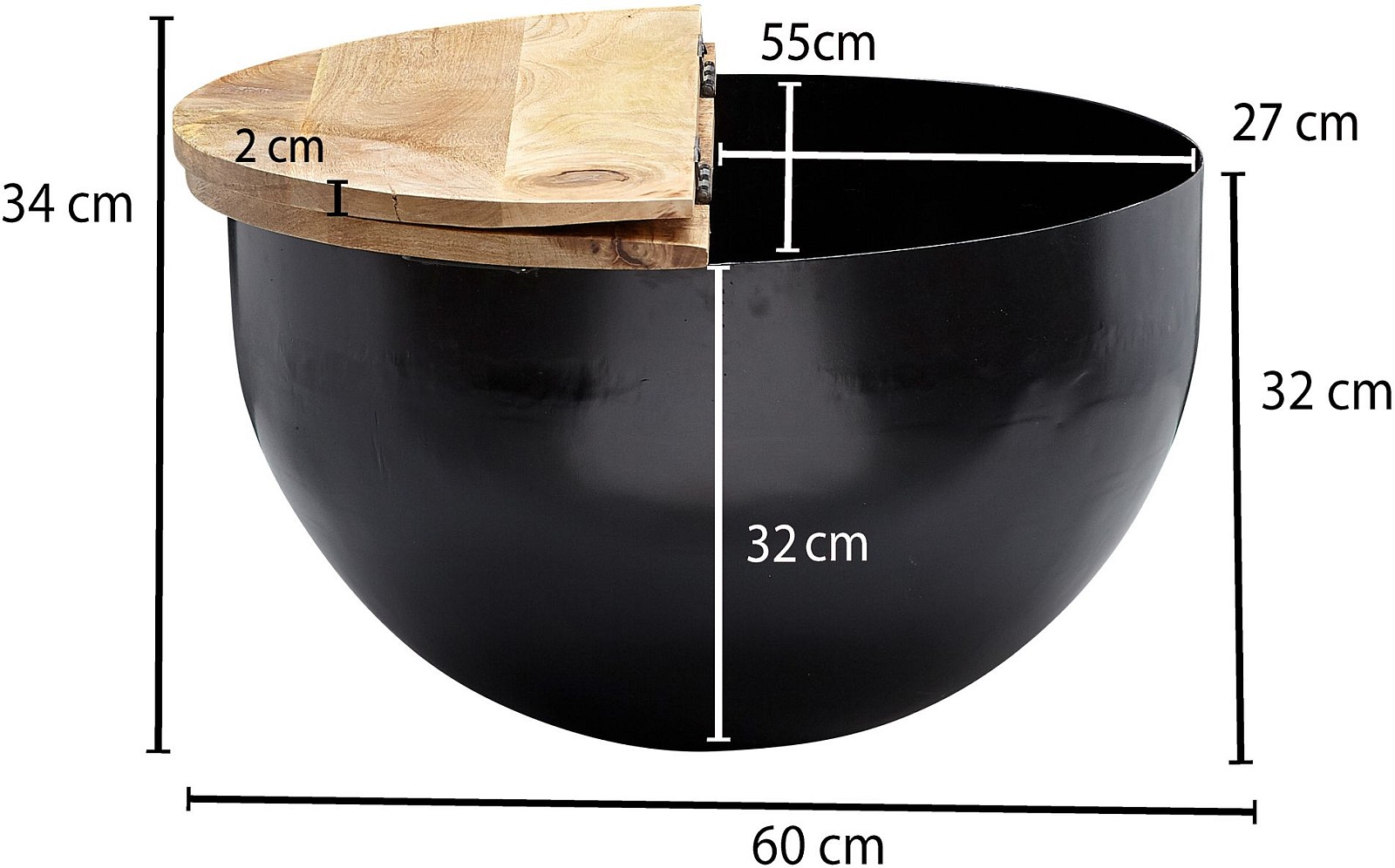 ABMESSUNGEN ✔ Breite: 60 cm // Höhe: 34 cm // Tiefe: 60 cm // Höhe des Staufachs: 32 cm // Maße der Öffnung (BxT): 55 x 27 cm // Tischplattenstärke: ca. 2 cm // Weitere Abmessungen finden Sie im Maßbild.