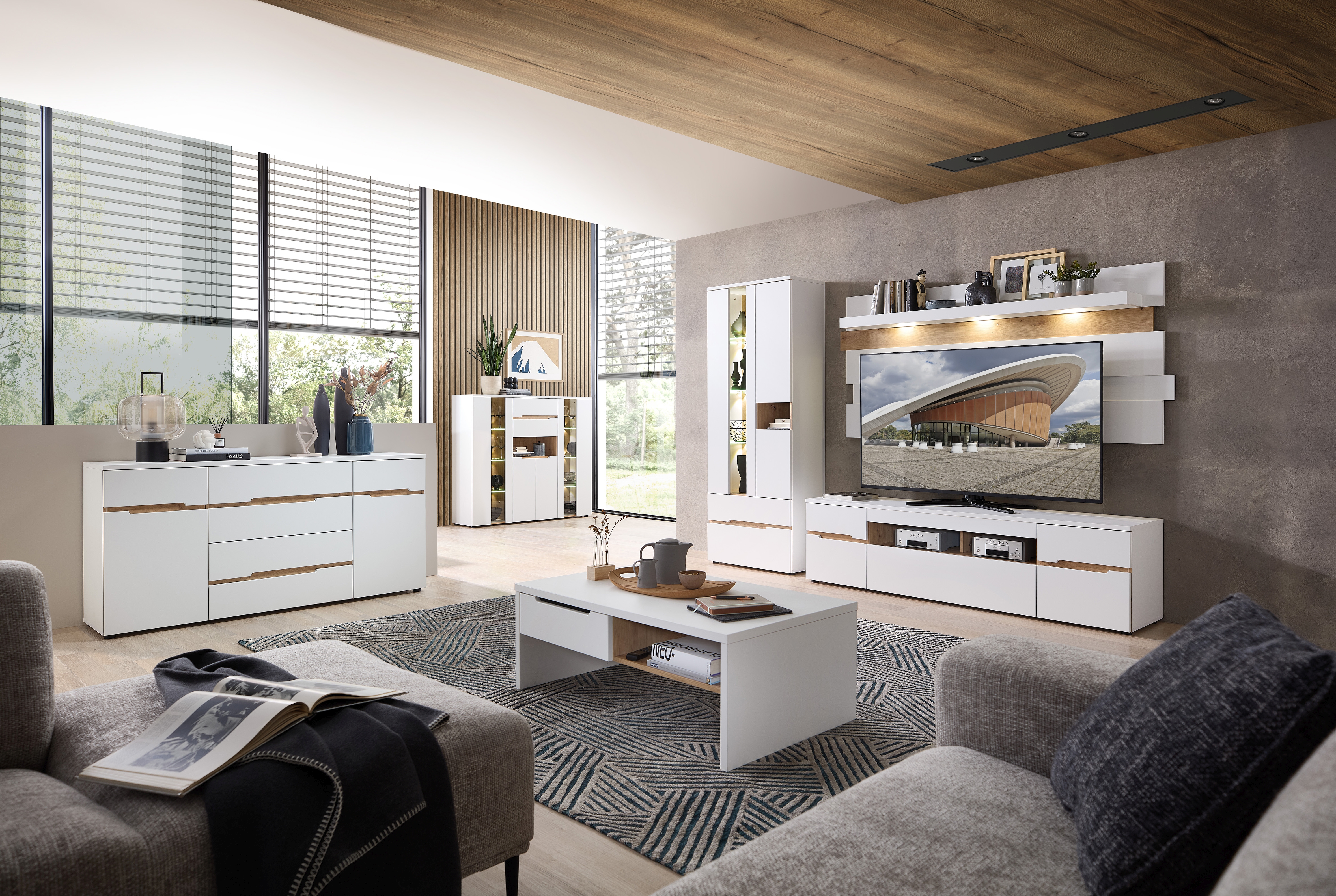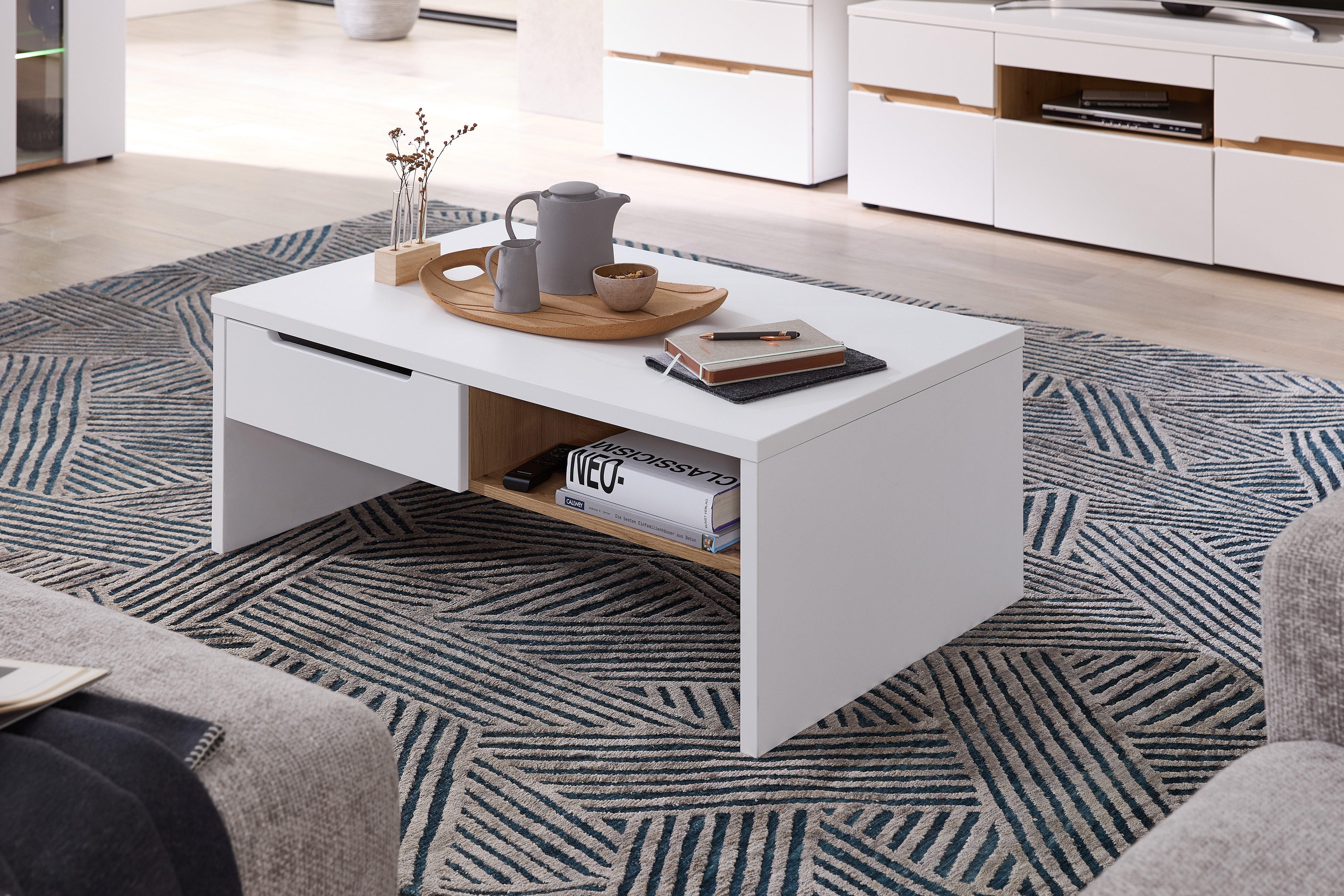 MDF (Mitteldichte Holzfaserplatte) in Weiß supermatt kombiniert mit Artisan Eiche Holznachbildung